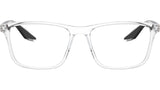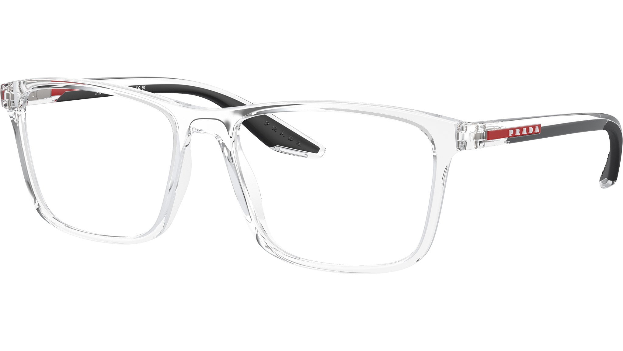 Occhiali da vista Prada Linea Rossa modello PS 01QV codice colore 2AZ1O1 con montatura d-frame full rim in nylon color trasparente e lenti demo. Rivenditore autorizzato Prada. Ogni prodotto Prada Linea Rossa viene consegnato con astuccio originale e accessori.