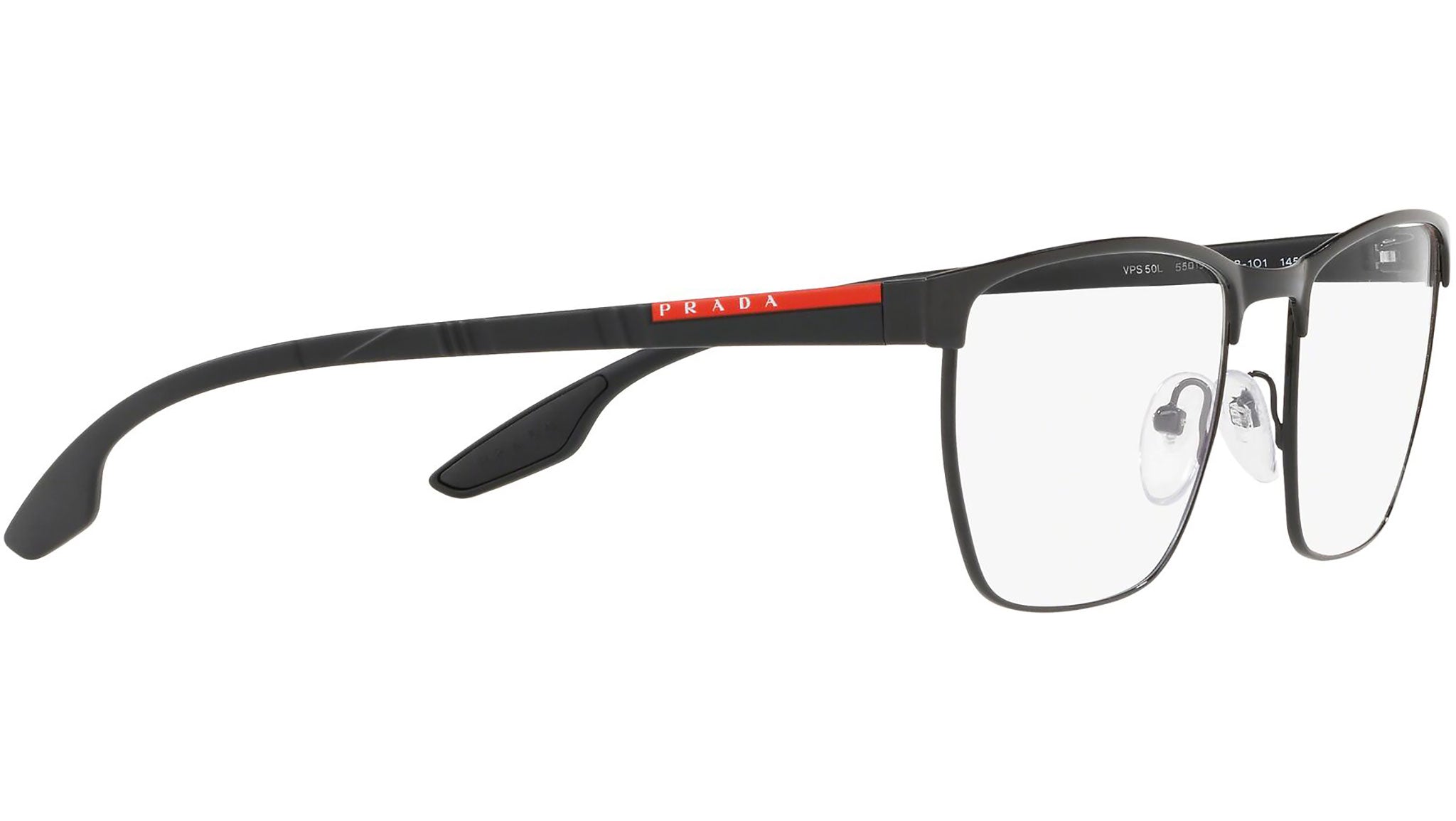 Prada Linea Rossa Eyewear Collection model PS 50LV, black frame variant, color code 1AB1O1. A new perspective, a fusion of sportswear and contemporary elegance: the Prada Linea Rossa Eyewear Collection conveys an everyday casual style with all the quality and craftsmanship of the Prada brand.