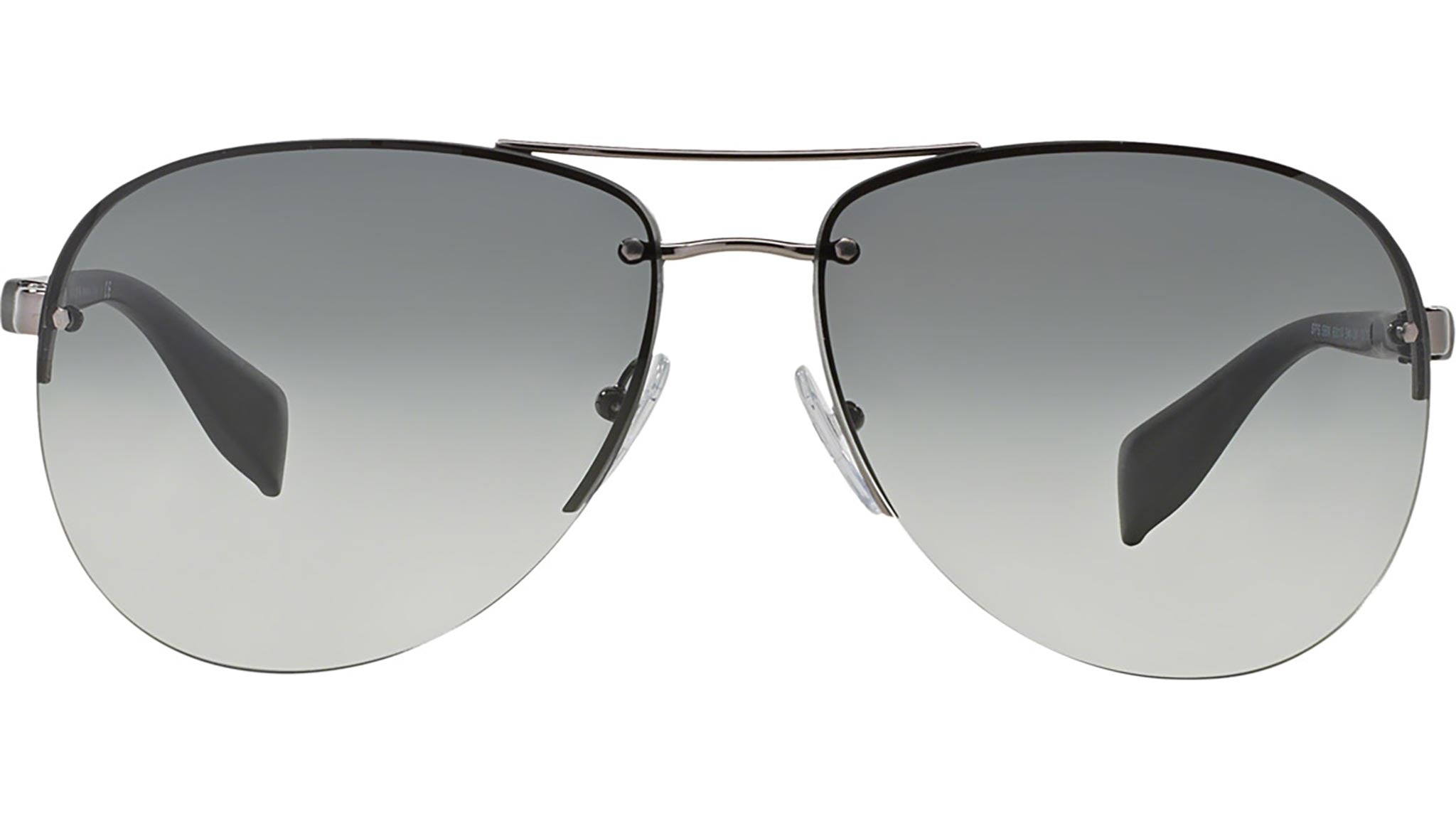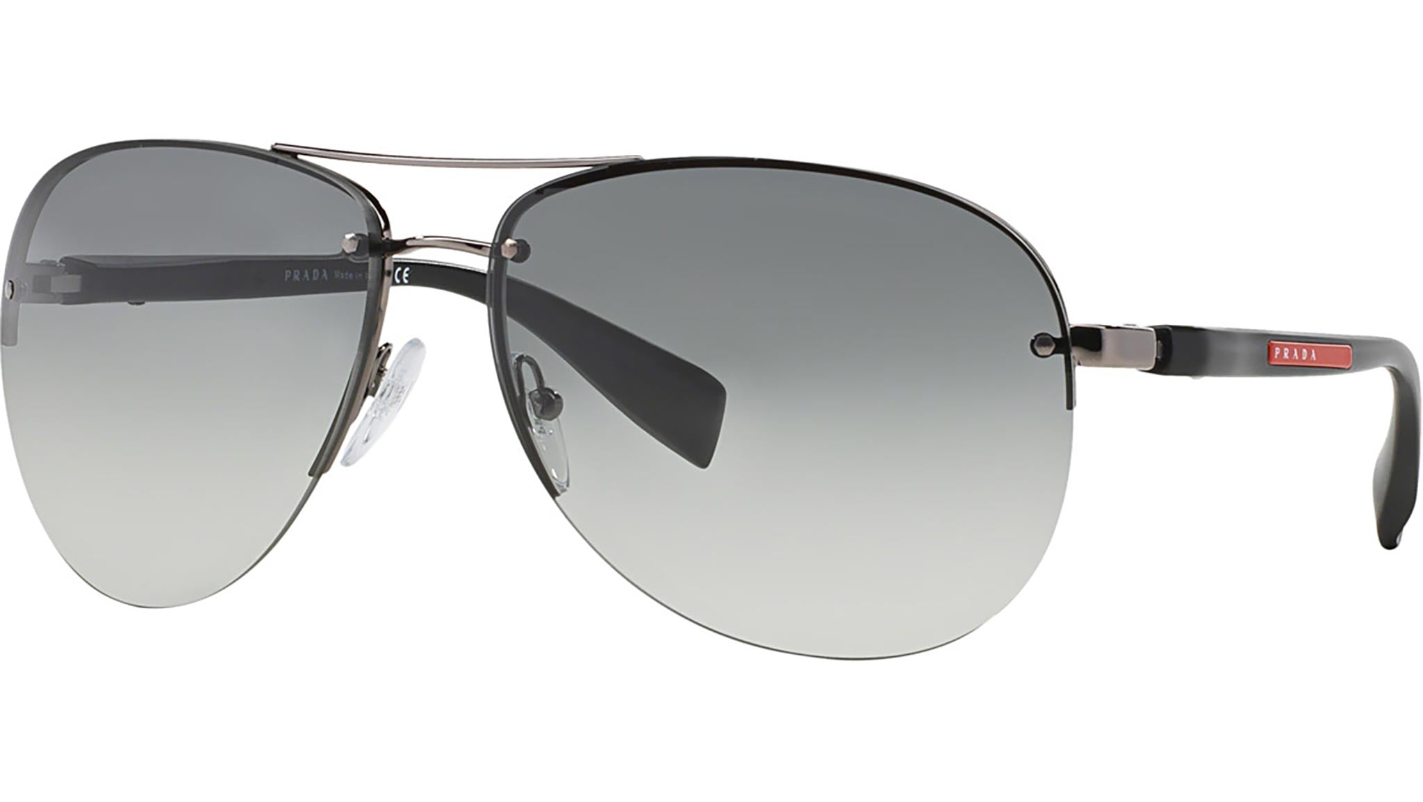 Prada Linea Rossa sunglasses model PS 56MS, gunmetal frame variant, color code 5AV3M1 with grey gradient lens. Prada Linea Rossa Sun Collection conveys an everyday casual style with all the quality and craftsmanship of the Prada brand.