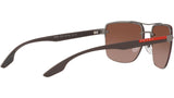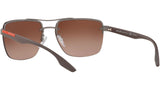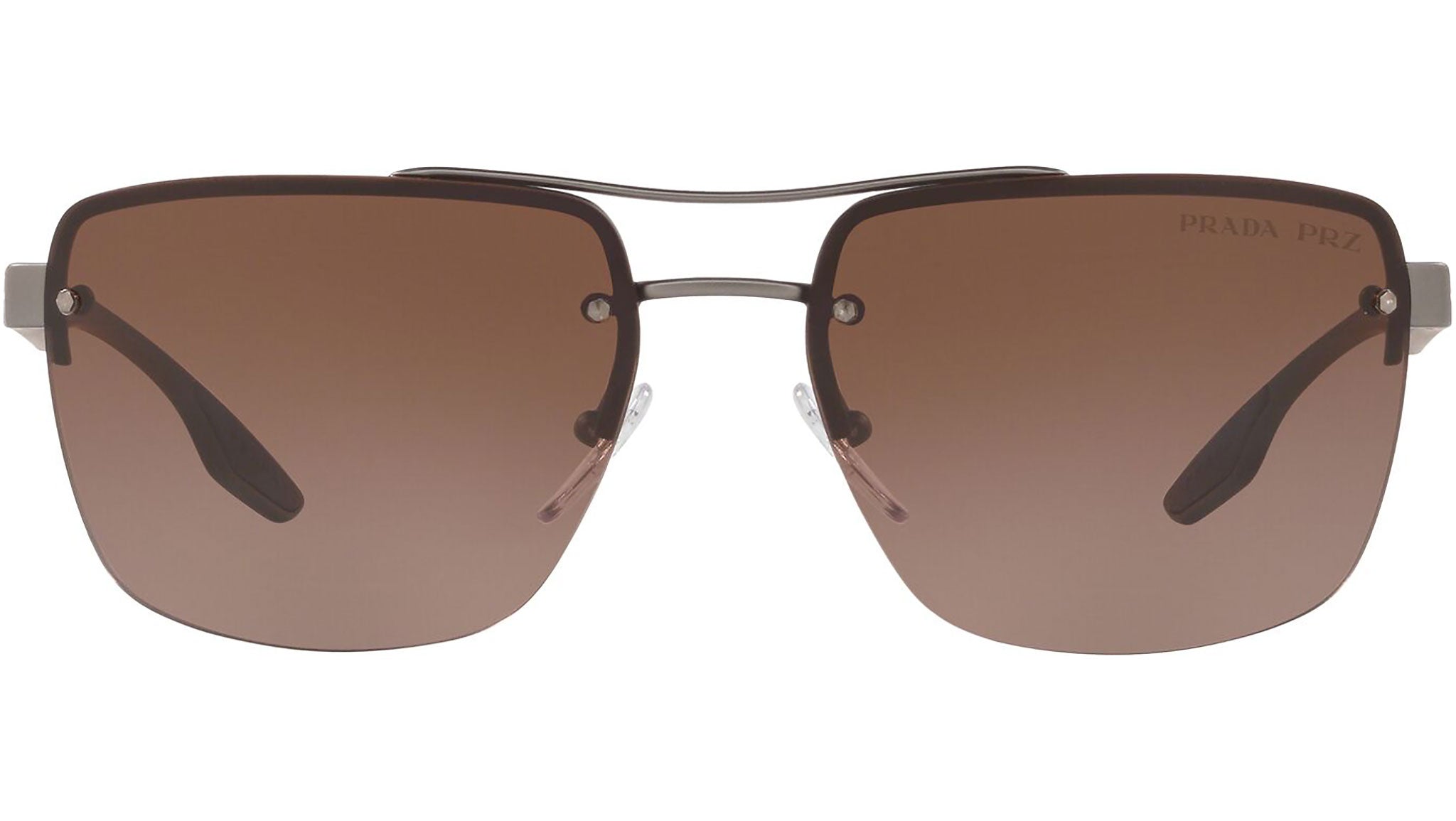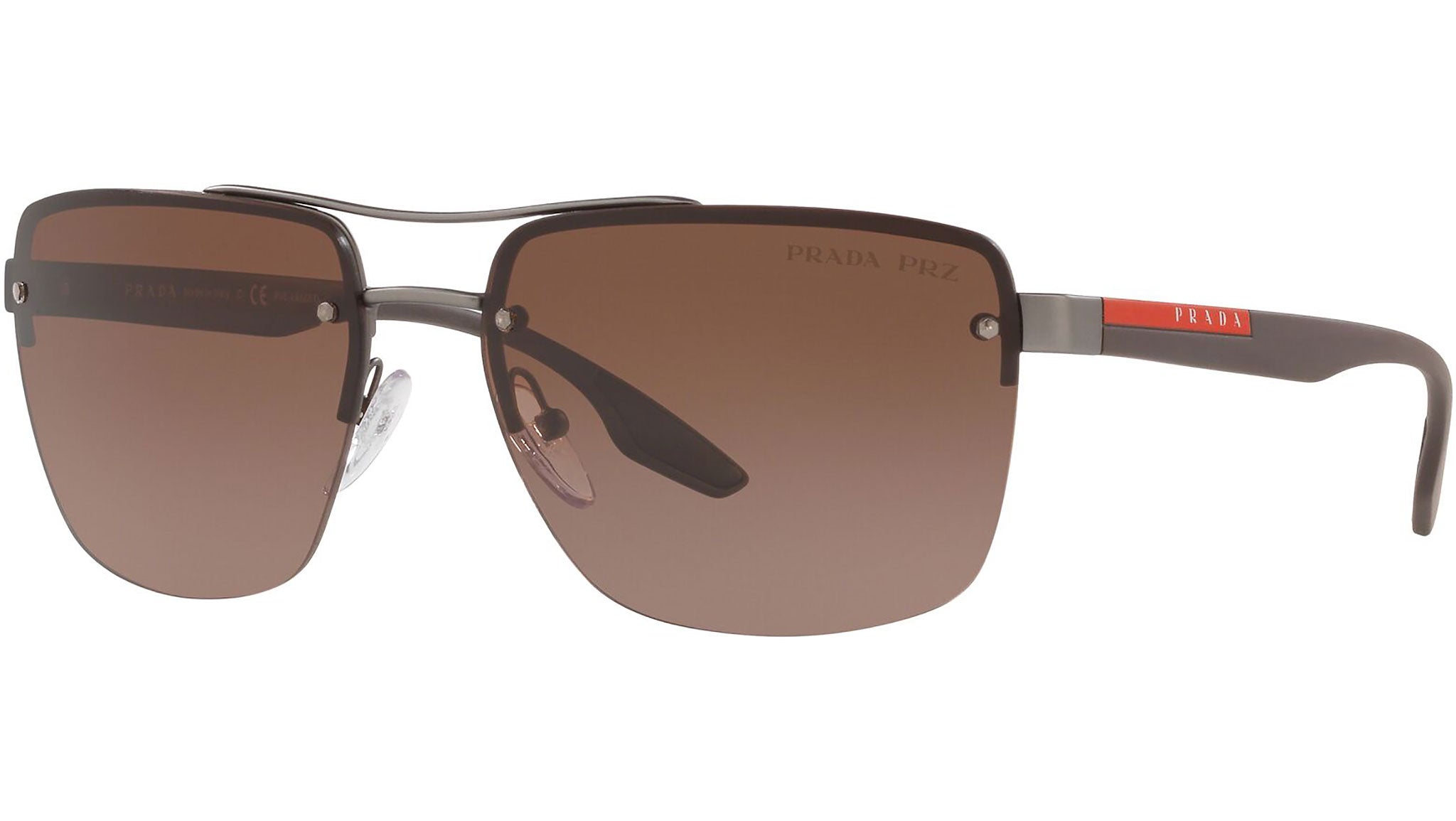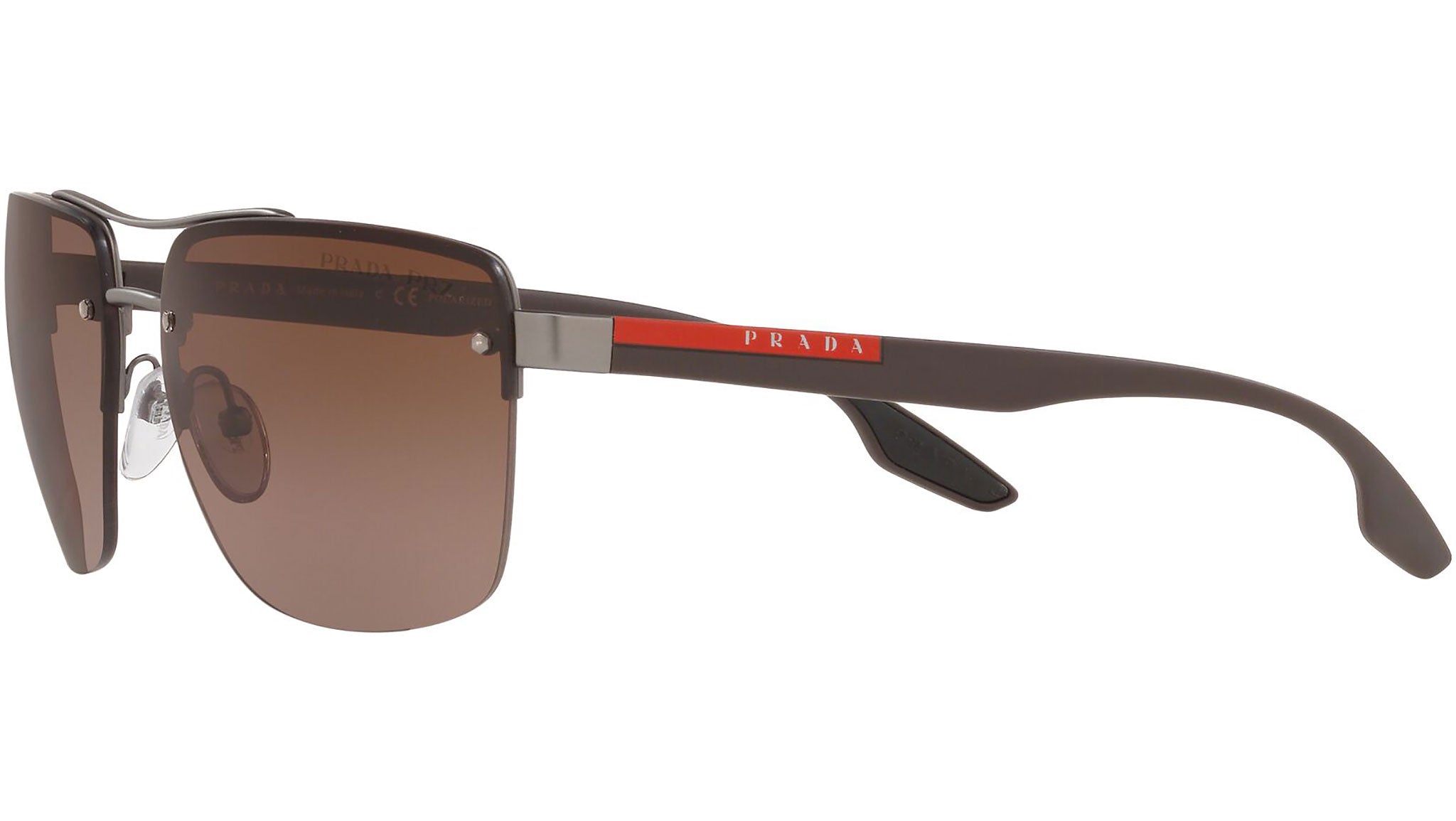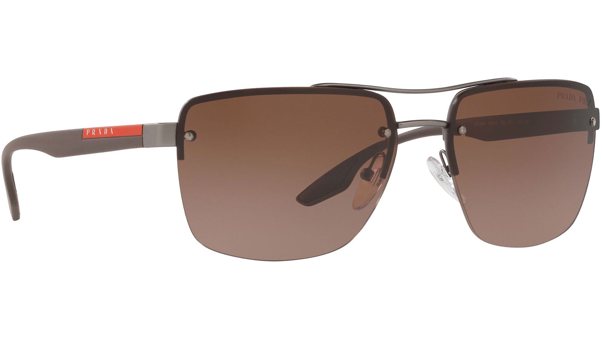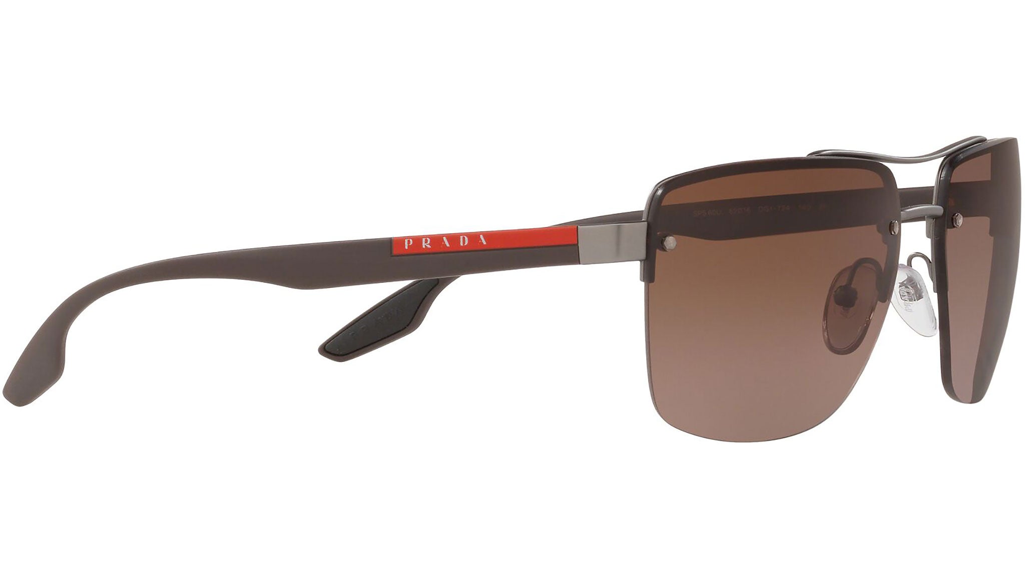 Prada Linea Rossa sunglasses model PS 60US, gunmetal rubber frame variant, color code DG1724 with polar brown gradient lens. Prada Linea Rossa Sun Collection conveys an everyday casual style with all the quality and craftsmanship of the Prada brand.