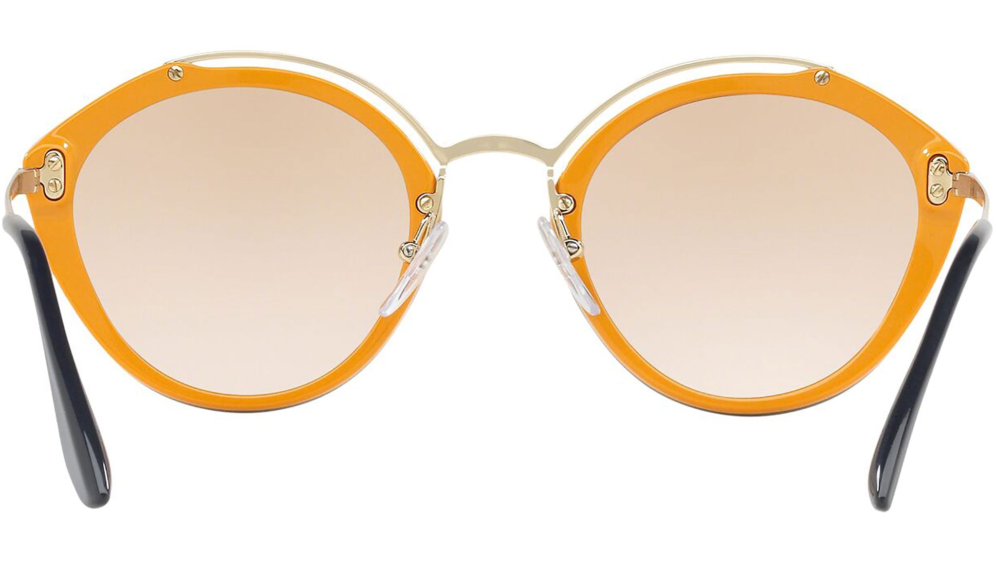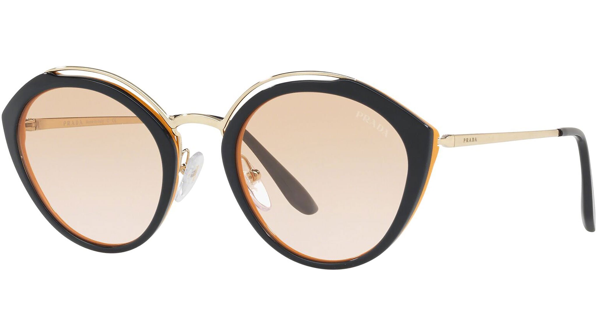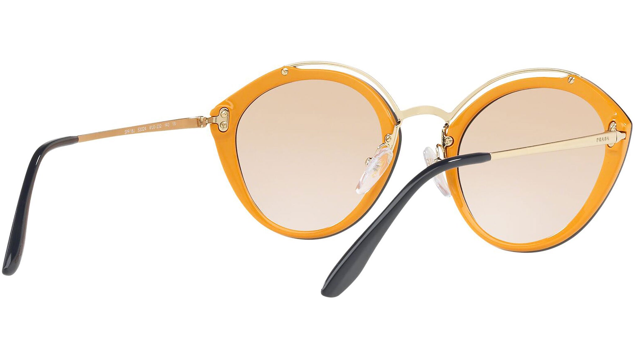 Occhiali da sole Prada modello PR 18US nella variante colore WU0232 giallo blu e oro chiaro con lenti color rosa sfumato arancione. Prada è uno dei marchi più rappresentativi della moda italiana, un esempio di stile, dove cultura e tradizione si fondono in uno dei brand più innovativi, prestigiosi e riconosciuti al mondo. Le collezioni di occhiali da sole Prada rispecchiano una grande attenzione ai dettagli e alle nuove tendenze, per uno stile inconfondibile, senza eguali, di raffinata eleganza e qualità assoluta.