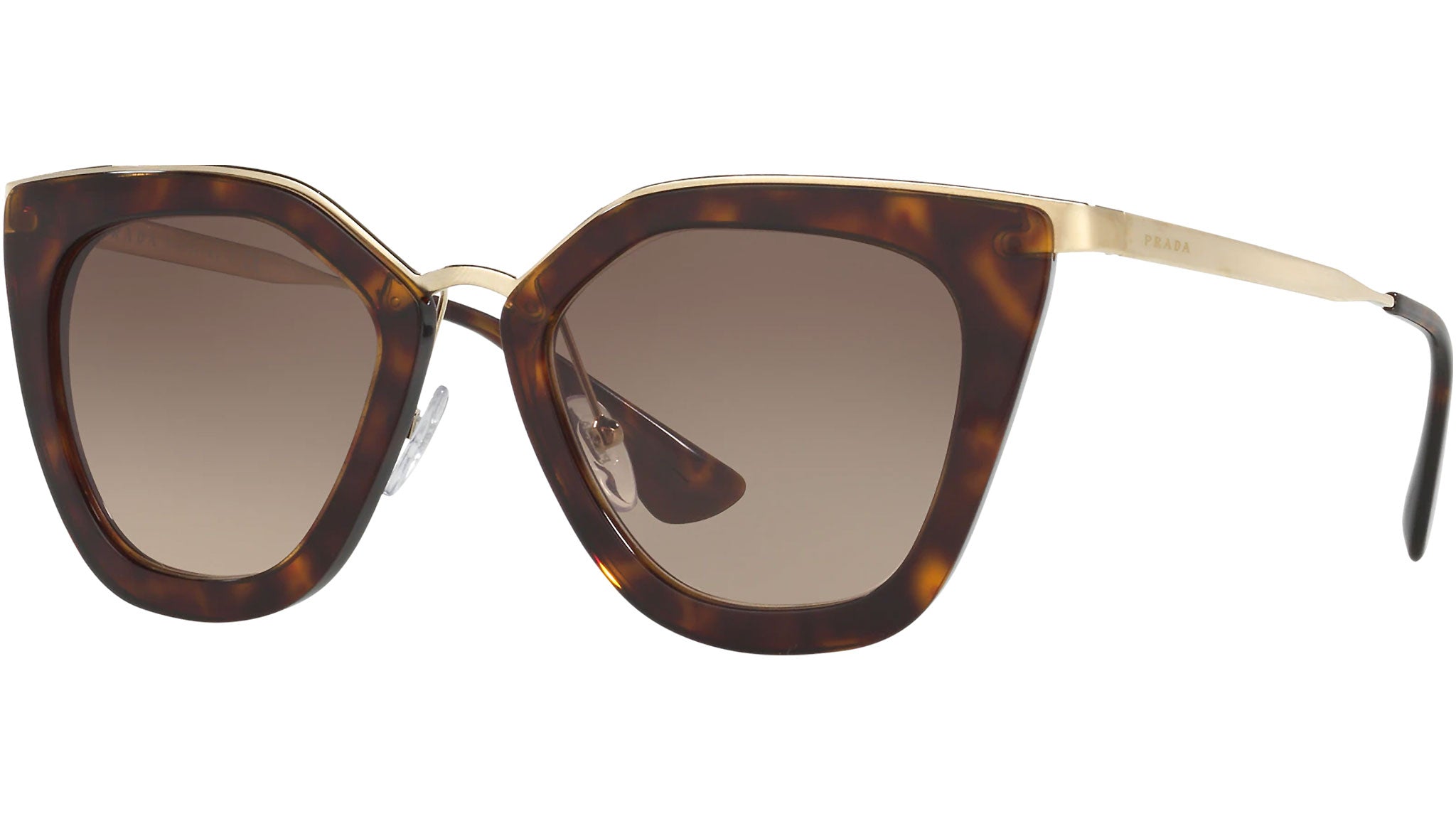 Prada sunglasses model PR 53SS, havana frame variant, color code 2AU3D0 with brown gradient lens. Prada represents the best of Italian culture and tradition. It is one of the most innovative, prestigious and widely recognized brands in the fashion and luxury goods industries, with a keen attention to details and new trends.