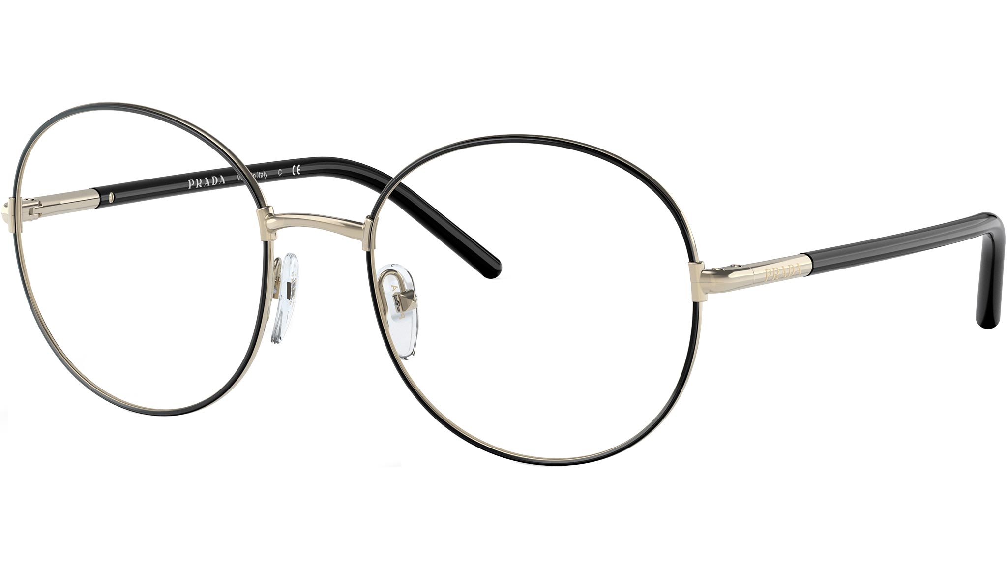 Occhiali da vista Prada modello PR 55WV variante colore oro chiaro e nero, codice colore AAV1O1. Prada rappresenta il vertice della tradizione e della moda Italiana. È uno dei brand più innovativi, prestigiosi e più riconosciuti nel mondo del fashion e degli accessori di lusso, massima espressione della cura per i dettagli, emblema di stile, nella sua raffinata interpretazione dei nuovi trend della moda internazionale.