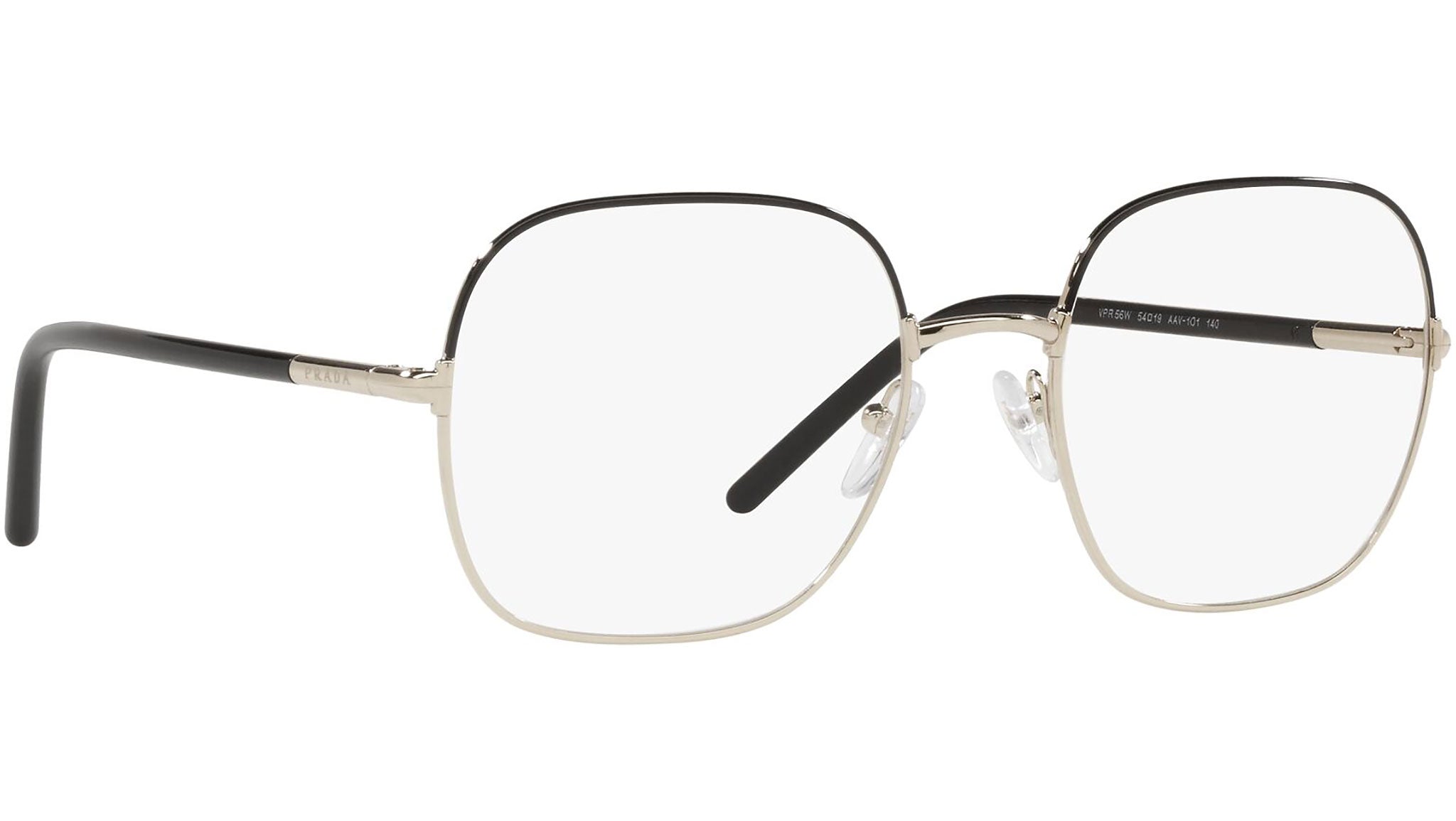 Occhiali da vista Prada modello PR 56WV variante colore nero e oro chiaro, codice colore AAV1O1. Prada rappresenta il vertice della tradizione e della moda Italiana. È uno dei brand più innovativi, prestigiosi e più riconosciuti nel mondo del fashion e degli accessori di lusso, massima espressione della cura per i dettagli, emblema di stile, nella sua raffinata interpretazione dei nuovi trend della moda internazionale.