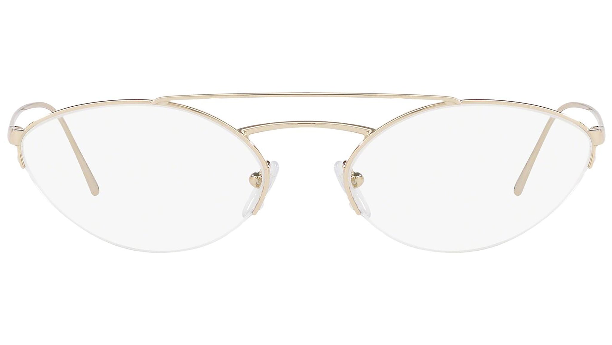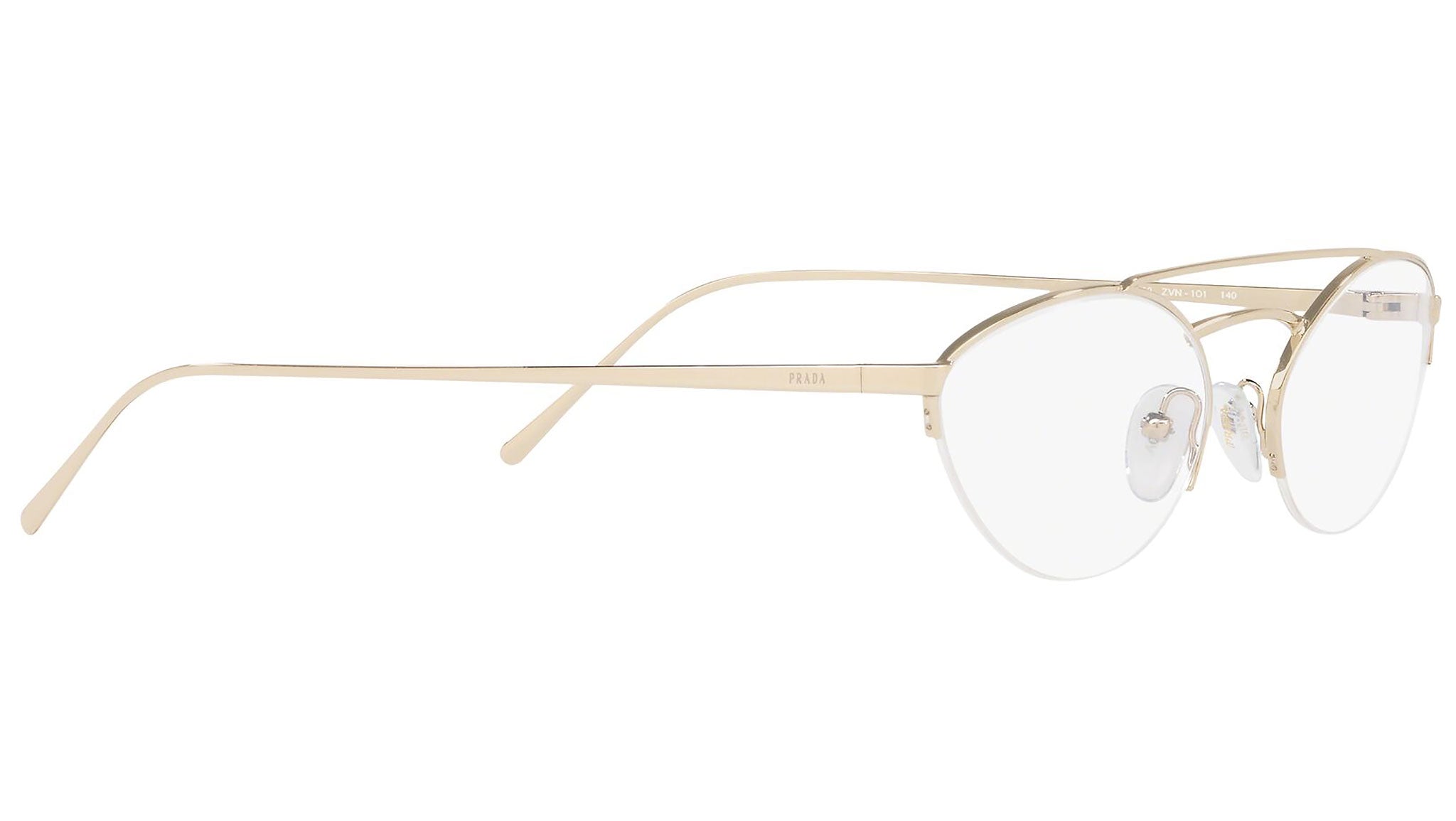 Occhiali da vista Prada modello PR 62VV, variante colore ZVN1O1 oro chiaro. Prada rappresenta il meglio della cultura e della tradizione italiana. È uno dei marchi più innovativi, prestigiosi e riconosciuti nel mondo della moda e del lusso. La linea Prada Eyewear Collection è sinonimo di spiccata attenzione ai dettagli e alle nuove tendenze.