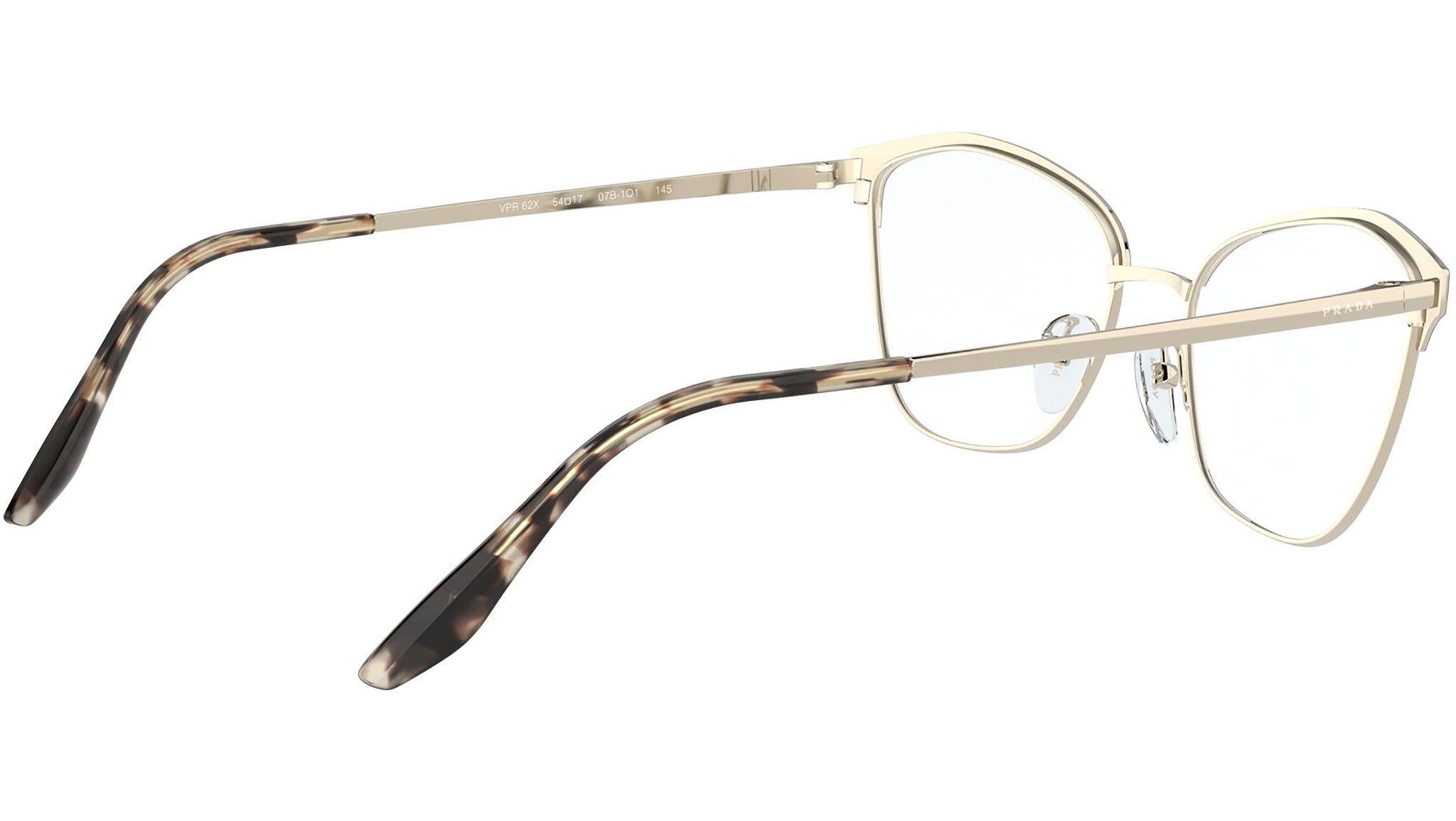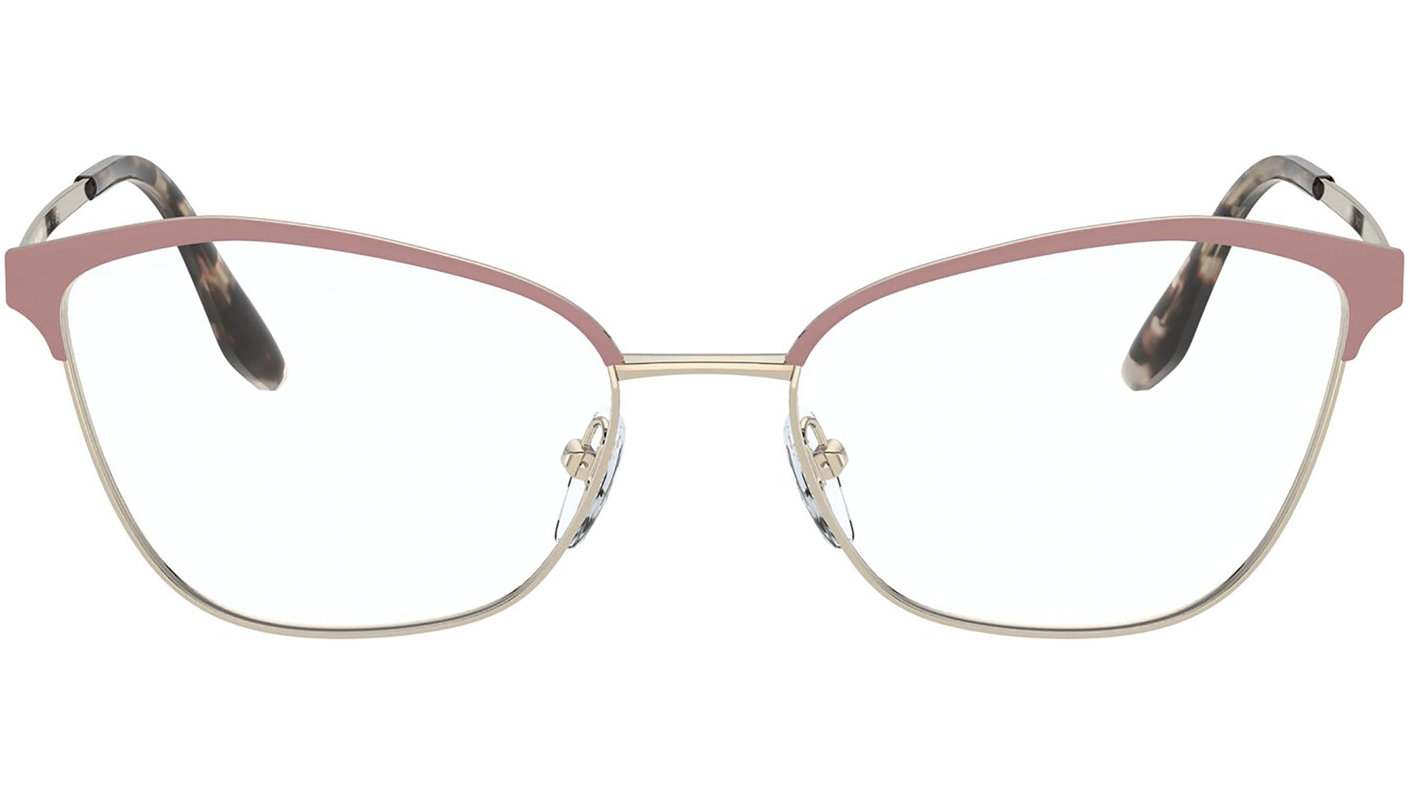 Prada Eyewear Collection model PR 62XV, matte pink and pale gold frame variant, color code 07B1O1. Prada represents the best of Italian culture and tradition. It is one of the most innovative, prestigious and widely recognized brands in the fashion and luxury goods industries, with a keen attention to details and new trends.
