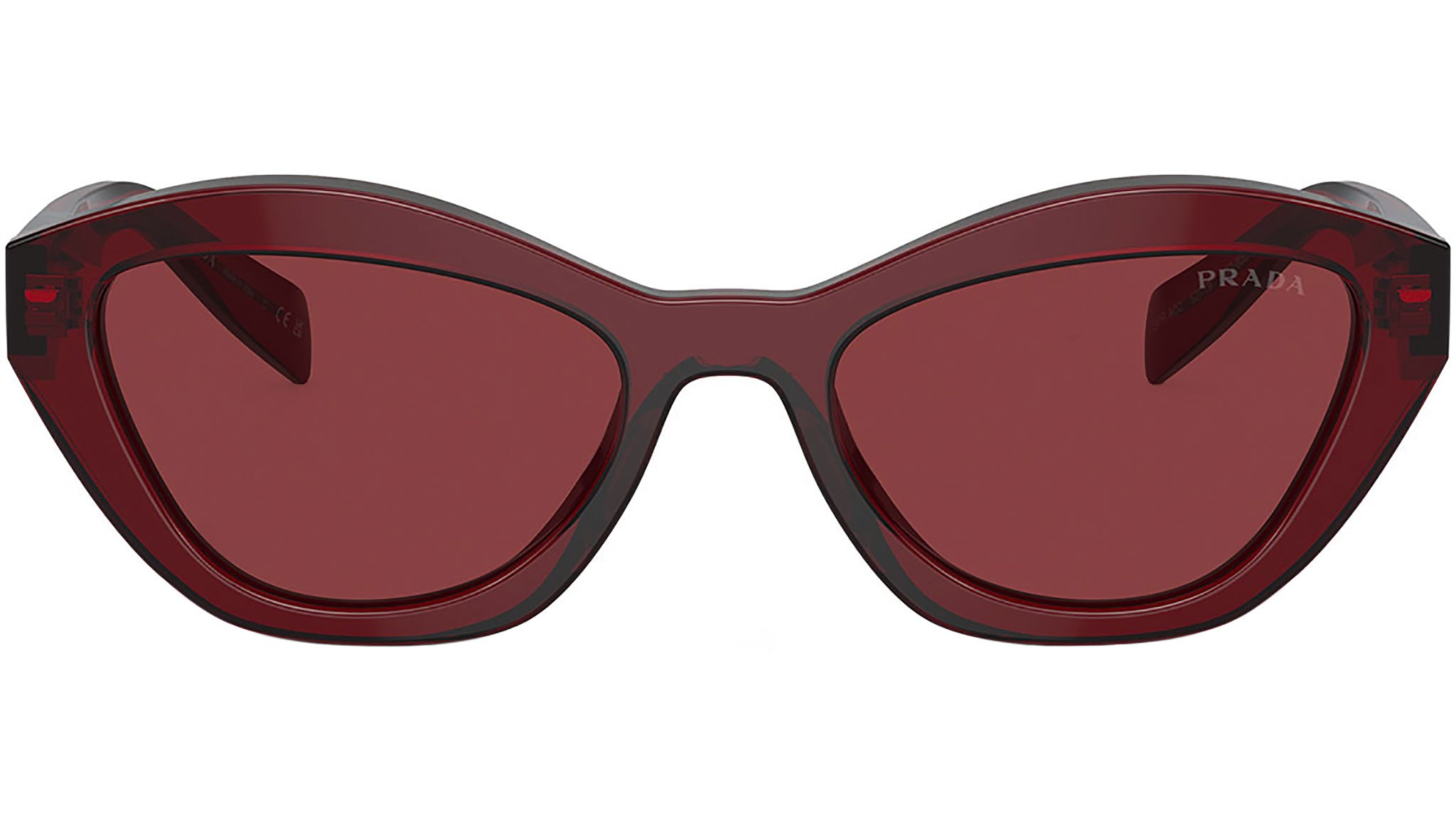 Occhiali da sole Prada donna modello A02S con montatura rosso trasparente full rim in acetato e lenti violetto scuro base 2. Fit a ponte alto. Linea: Catwalk. Brand code: PRA02S. Codice colore: 18O80B. Rivenditore autorizzato Prada. Ogni prodotto Prada viene consegnato con astuccio originale e accessori ed è coperto da garanzia del produttore di 12 mesi.