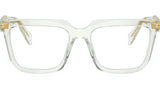Occhiali da vista Prada donna modello A19V con montatura menta trasparente in acetato e lenti demo base 4. Fit a ponte alto. Linea: Catwalk. Brand code: PRA19V. Codice colore: 14R1O1. Rivenditore autorizzato Prada. Ogni prodotto Prada viene consegnato con astuccio originale e accessori ed è coperto da garanzia del produttore di 12 mesi.