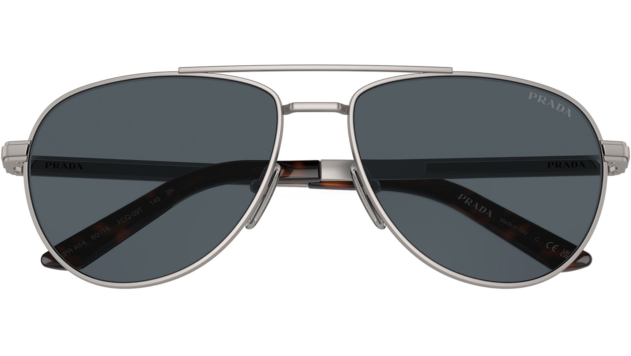 Occhiali da sole Prada uomo modello A54S con montatura canna di fucile opaco full rim in metallo e lenti grigio scuro base 2. Fit con naselli regolabili. Linea: Signature. Brand code: PRA54S. Codice colore: 7CQ09T. Rivenditore autorizzato Prada. Ogni prodotto Prada viene consegnato con astuccio originale e accessori ed è coperto da garanzia del produttore di 12 mesi.
