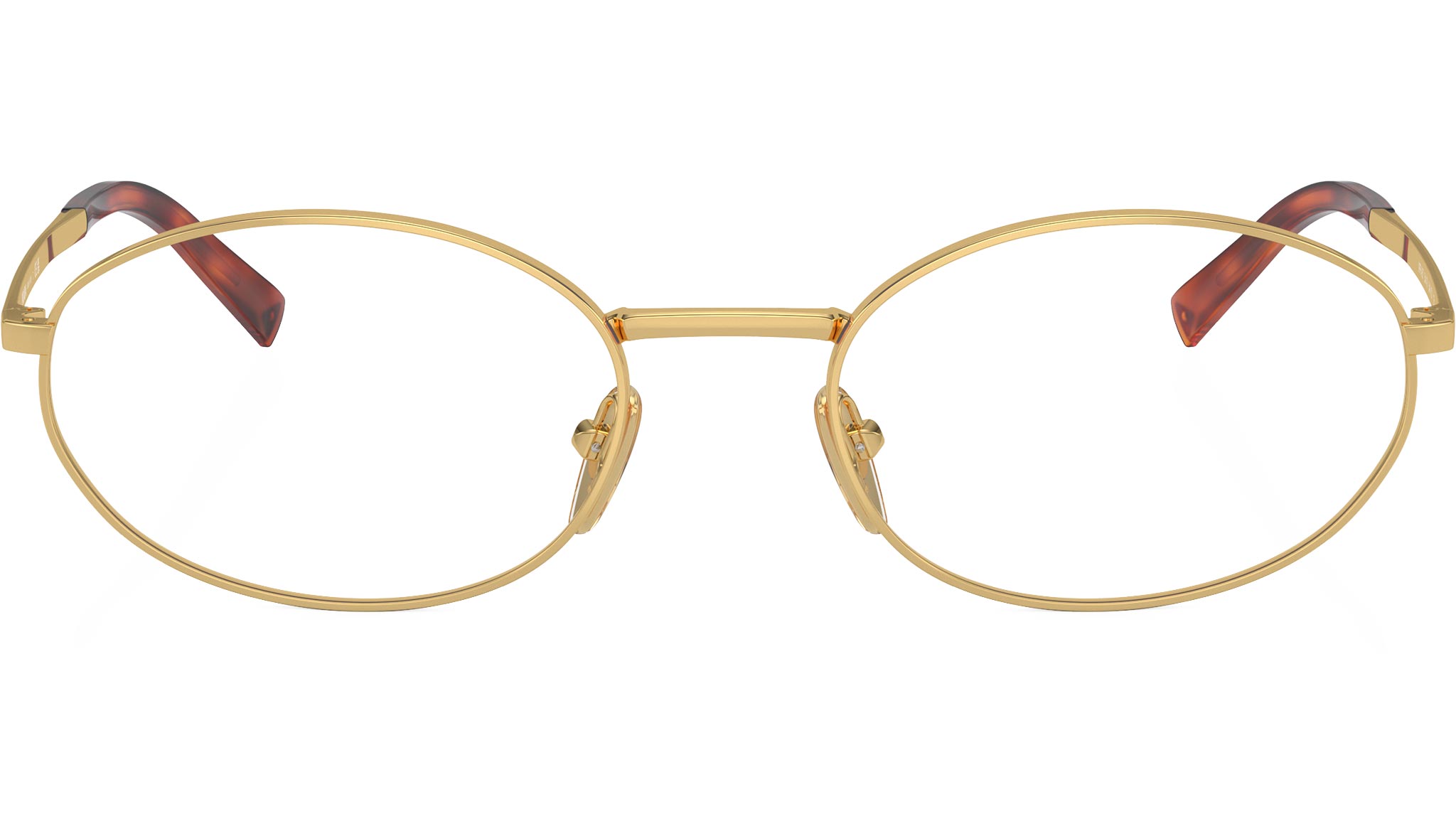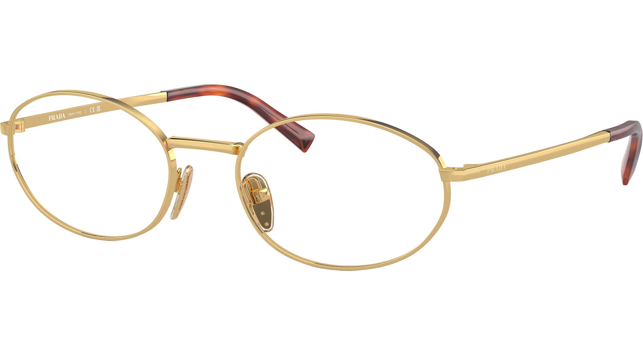 Occhiali da vista Prada donna modello A57V con montatura oro full rim in metallo e lenti demo base 4. Fit con naselli regolabili. Linea: Signature. Brand code: PRA57V. Codice colore: 5AK1O1. Rivenditore autorizzato Prada. Ogni prodotto Prada viene consegnato con astuccio originale e accessori ed è coperto da garanzia del produttore di 12 mesi.
