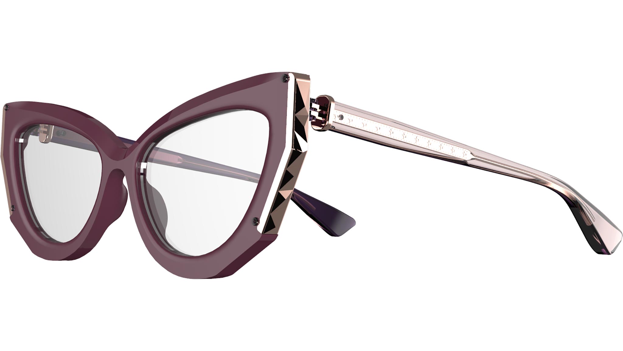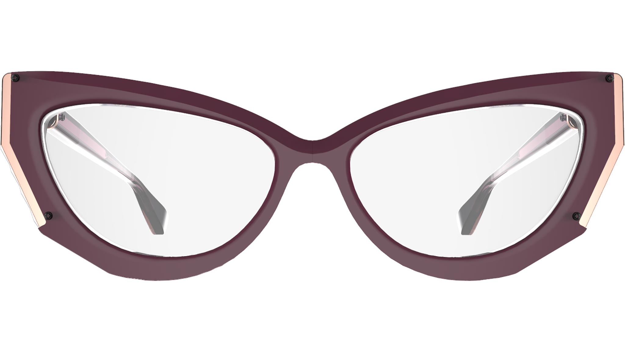 Pugnale Eyewear optical model P424V Change color code 56 in bordeaux. Full rim cat eye acetate frame with demo lens. The brand's identifying logo proudly marks the Priscilla line of Pugnale Eyewear. The woman is a diamond, multifaceted in every aspect. She embodies strength and sweetness, tenacity and courage, perseverance and charisma - adjectives that converge to form a singular expression of beauty. Vivid and radiant colors blend with femininity in iconic shapes, reimagined in the way Pugnale Eyewear uniquely appreciates, characterized by boldness and high design content.