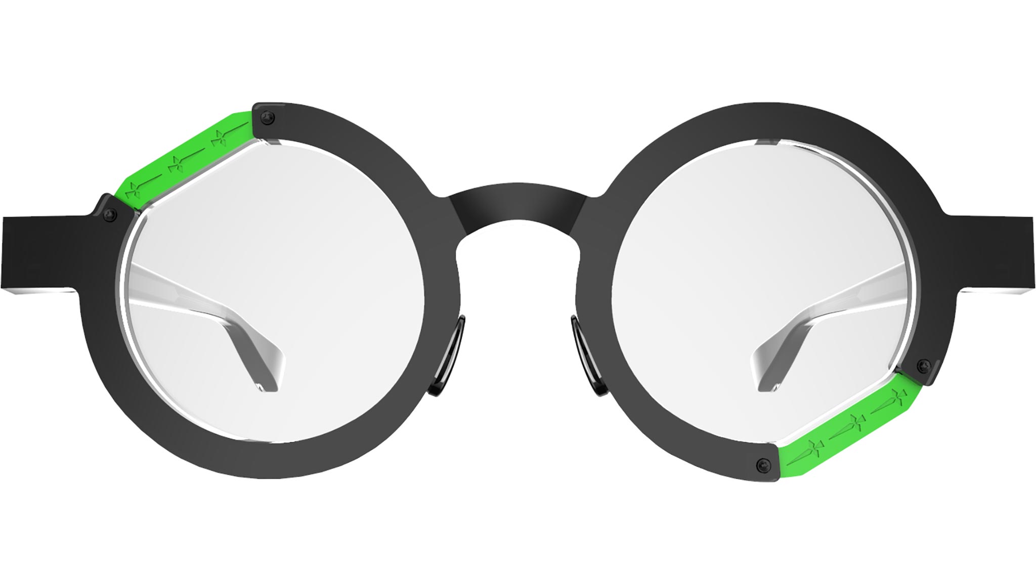 Pugnale Eyewear optical model P423V To be color code 31 in black / green fluo. Full rim round acetate frame with demo lens. The brand's identifying logo proudly marks the Priscilla line of Pugnale Eyewear. The woman is a diamond, multifaceted in every aspect. She embodies strength and sweetness, tenacity and courage, perseverance and charisma - adjectives that converge to form a singular expression of beauty. Vivid and radiant colors blend with femininity in iconic shapes, reimagined in the way Pugnale Eyewear uniquely appreciates, characterized by boldness and high design content.