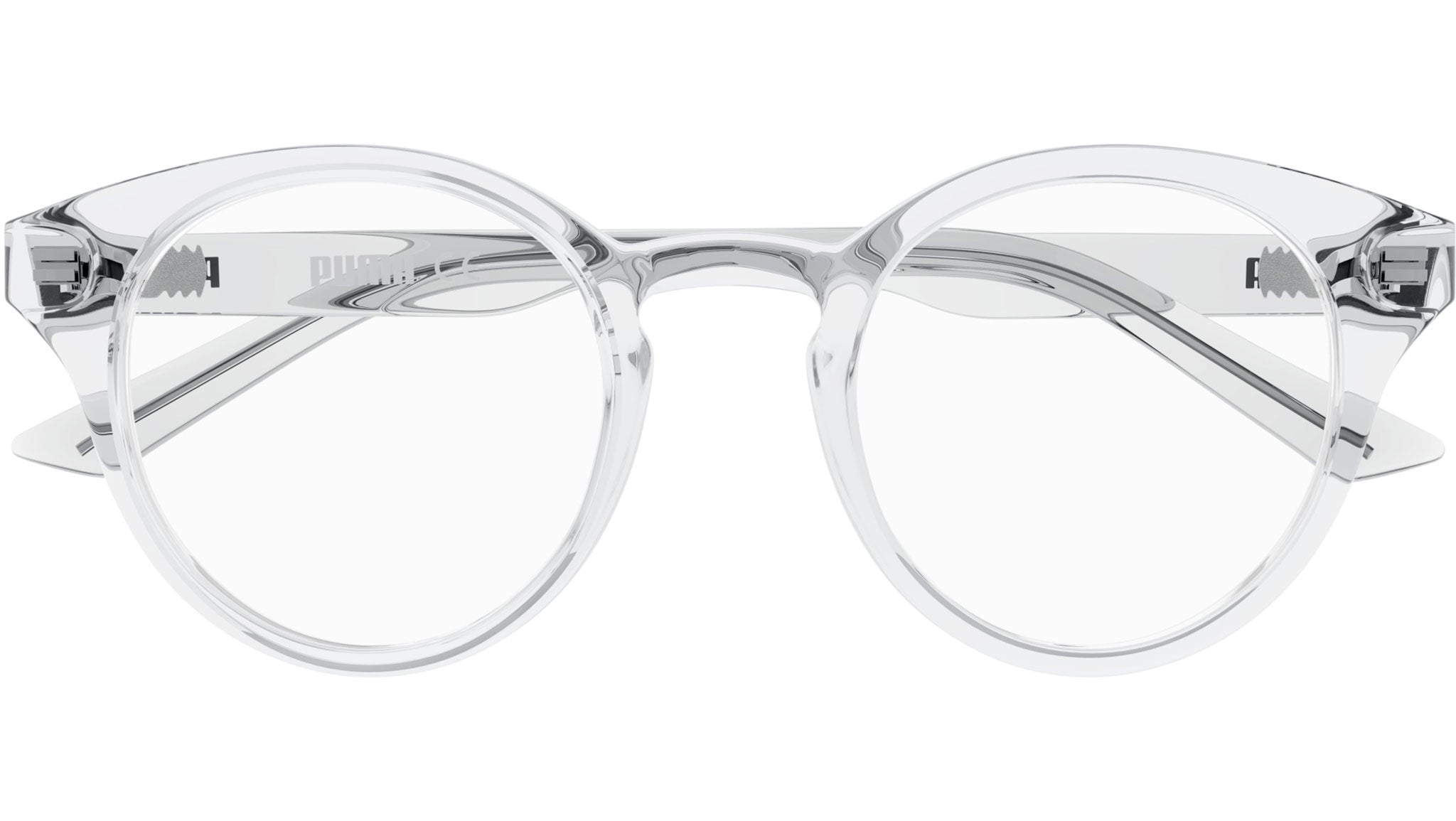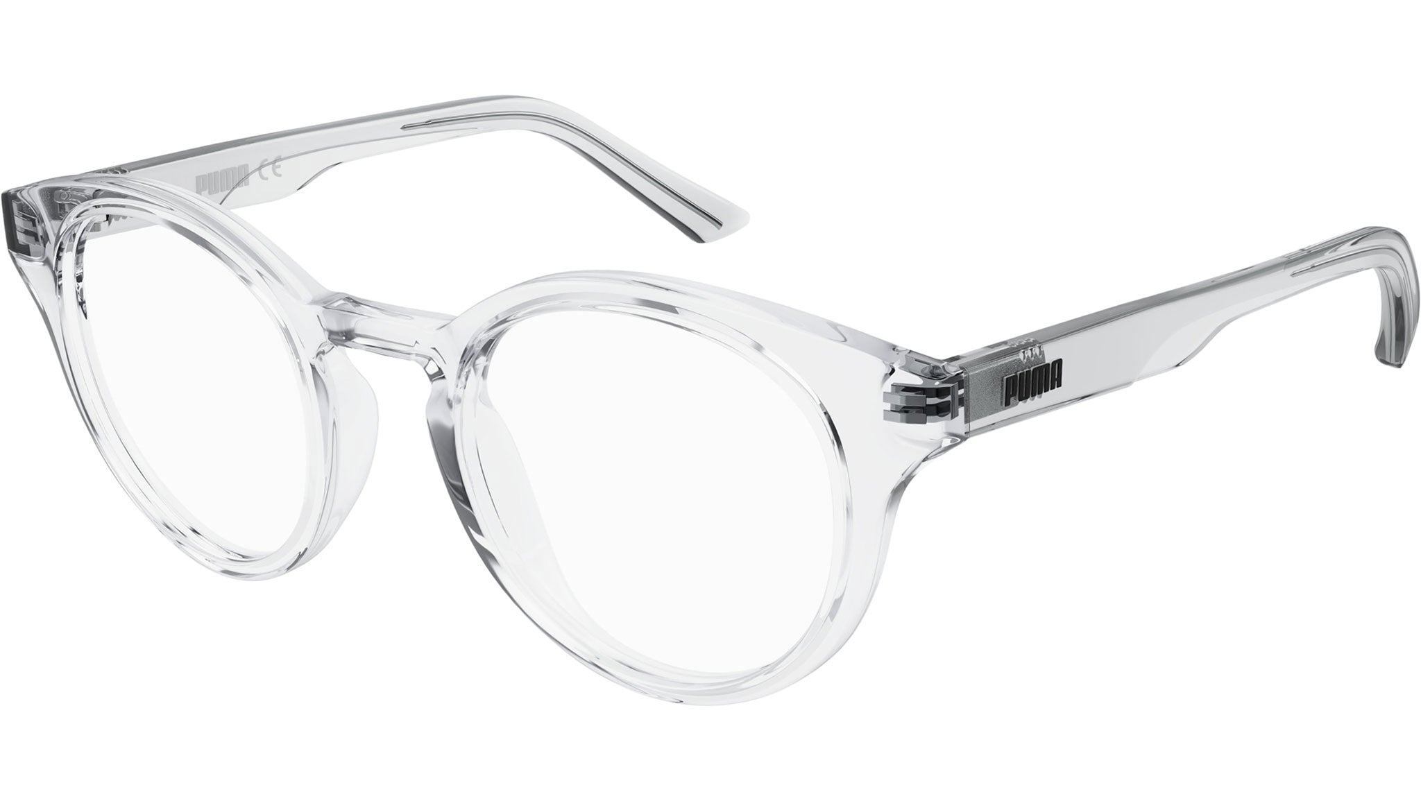 Occhiali da vista Puma Junior modello PJ0069O variante colore 004 cristallo lucido con lenti demo.
