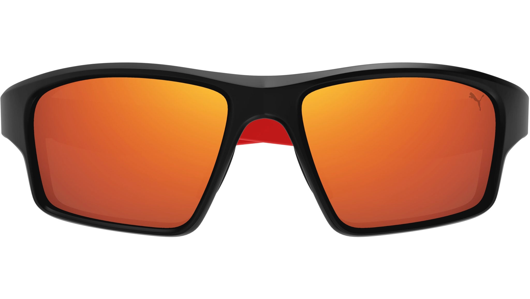 Occhiali da sole Puma Sport modello PU0437S variante colore 002 nero opaco con lenti color verde solido + rosso a specchio. Rivenditore autorizzato Puma online. Gli occhiali vengono consegnati con custodia e accessori originali e sono coperti dalla garanzia ufficiale di 12 mesi del produttore.
