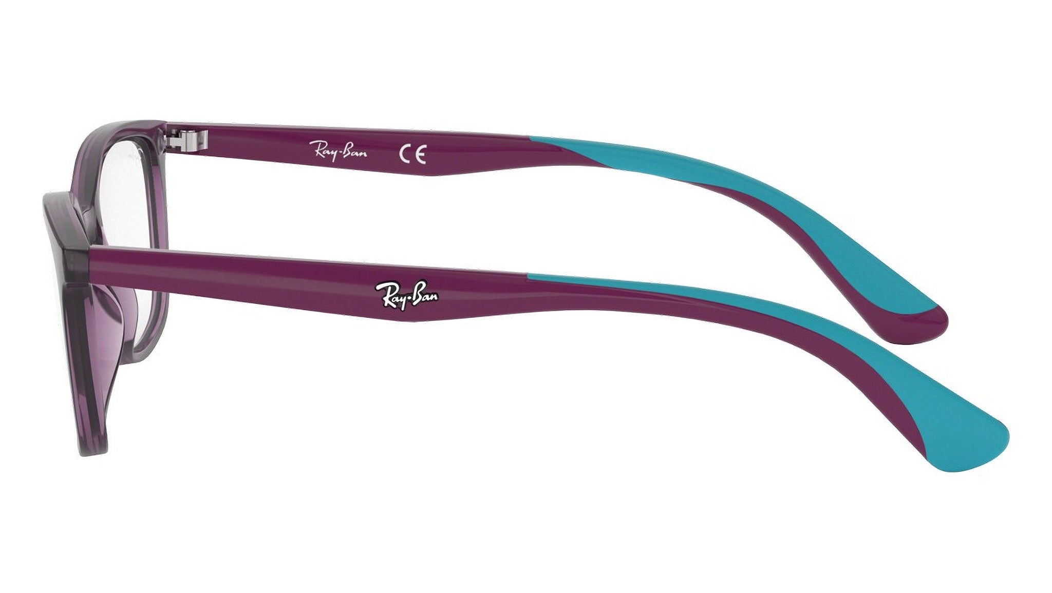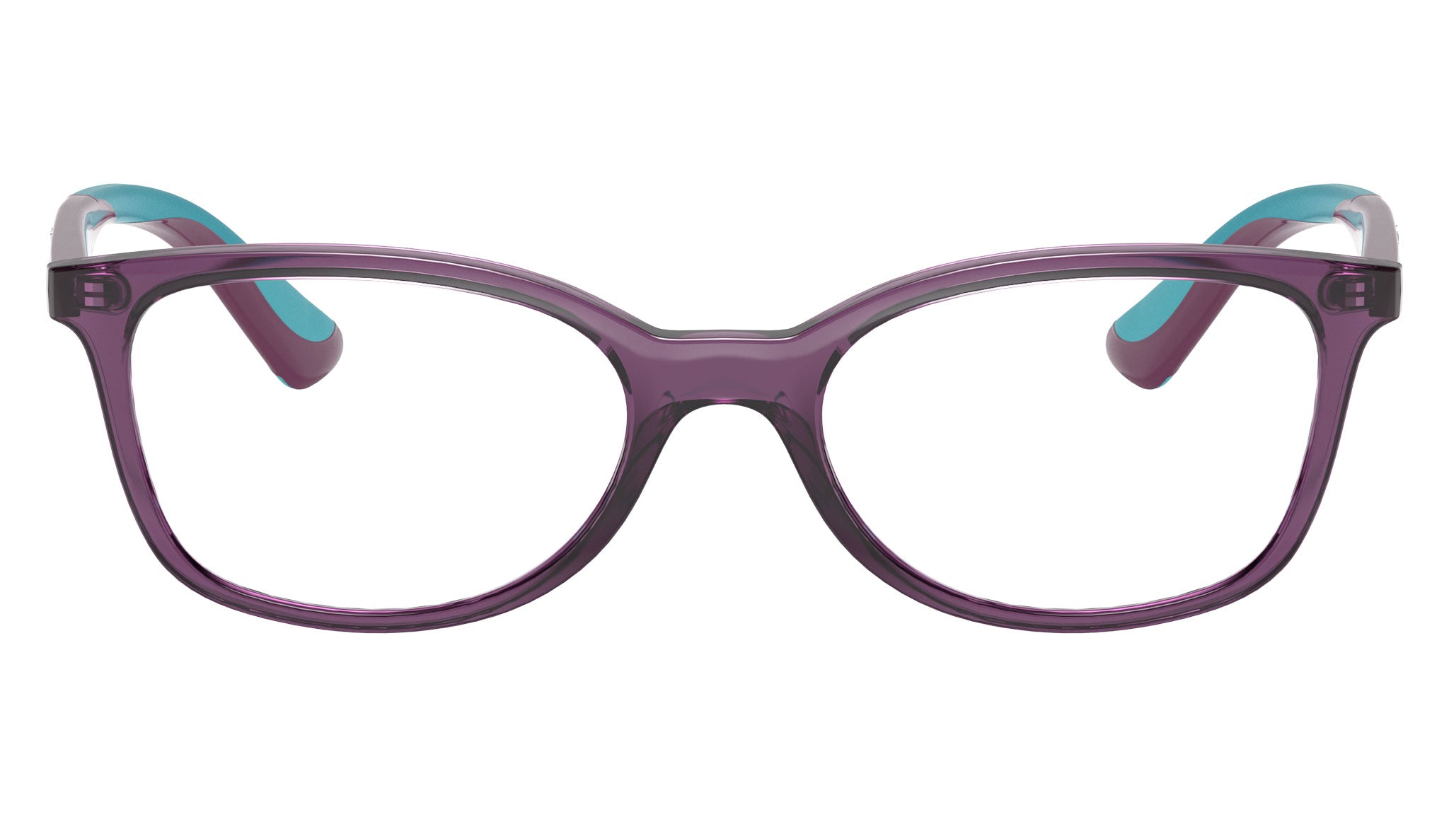 Occhiali da vista Ray-Ban Kids RY1586 color violet trasparente in acetato codice colore 3776. Forma unisex quadrata full rim con lenti demo. Con custodia originale e garanzia. Rivenditore autorizzato Ray-Ban.
