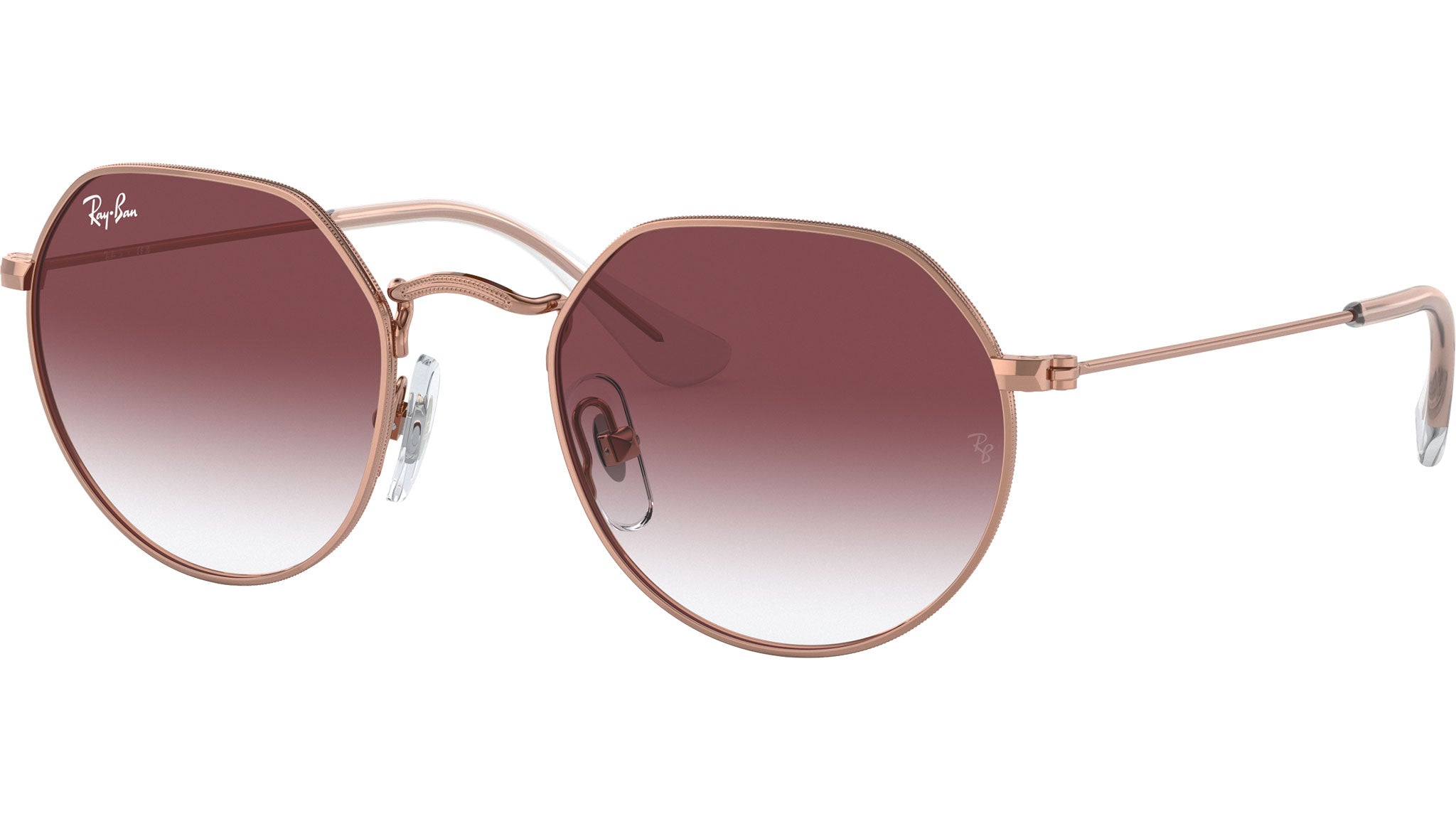 Occhiali da sole Ray-Ban Junior Jack RJ9565S 291/8H unisex con montatura geometrica in metallo oro rosa e lenti in policarbonato color sfumato viola scuro. Naselli regolabili. Linea: Kids Originals. Codice modello: 0RJ9565S. Codice colore: 291/8H. Rivenditore autorizzato Ray-Ban online. Gli occhiali vengono consegnati con custodia e accessori originali e sono coperti dalla garanzia ufficiale di 12 mesi del produttore.