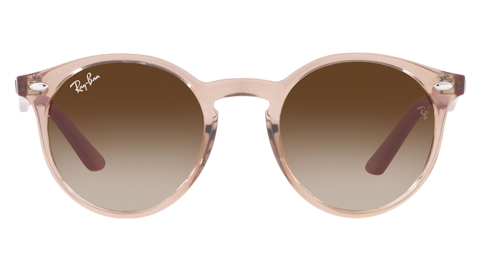 Occhiali da sole Ray-Ban Kids RJ9064S in iniettato codice colore 712313 marrone trasparente. Forma panto unisex full rim con lenti marrone. Con custodia originale e garanzia. Rivenditore autorizzato Ray-Ban.
