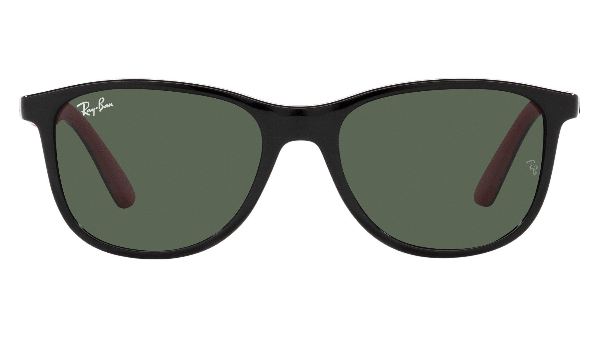 Occhiali da sole Ray-Ban Kids RJ9077S in iniettato codice colore 713171 nero su rosso. Forma quadrata unisex full rim con lenti verde scuro. Con custodia originale e garanzia. Rivenditore autorizzato Ray-Ban.
