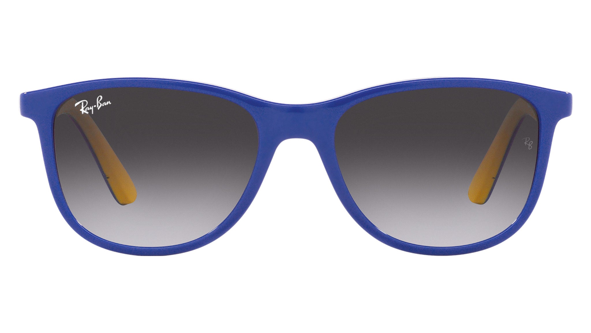 Occhiali da sole Ray-Ban Kids RJ9077S in iniettato codice colore 71328G blu su giallo. Forma quadrata unisex full rim con lenti grigio / blu. Con custodia originale e garanzia. Rivenditore autorizzato Ray-Ban.