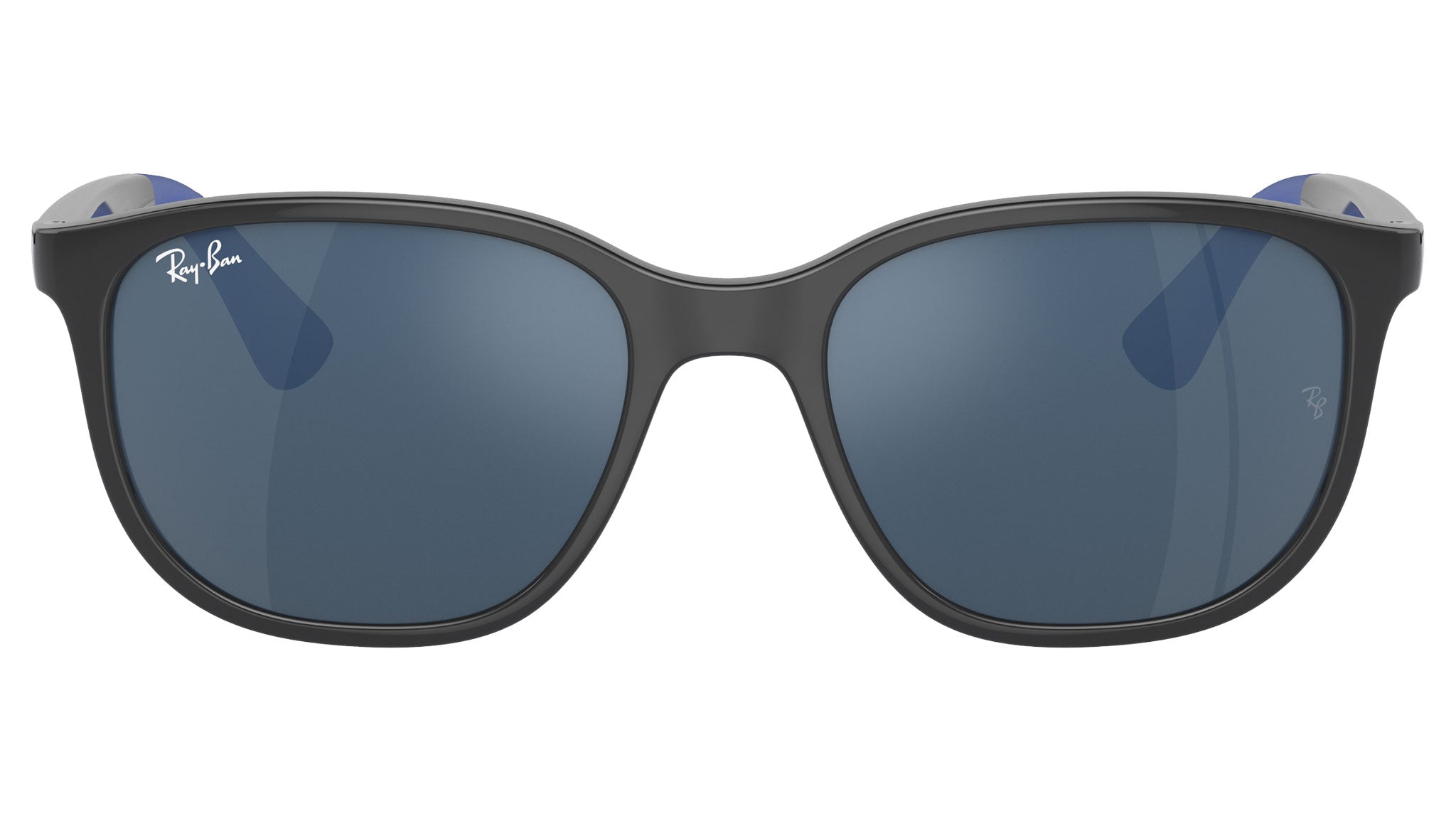 Occhiali da sole Ray-Ban Kids RJ9078S in iniettato codice colore 715155 grigio su blu. Forma quadrata unisex full rim con lenti blu scuro. Con custodia originale e garanzia. Rivenditore autorizzato Ray-Ban.