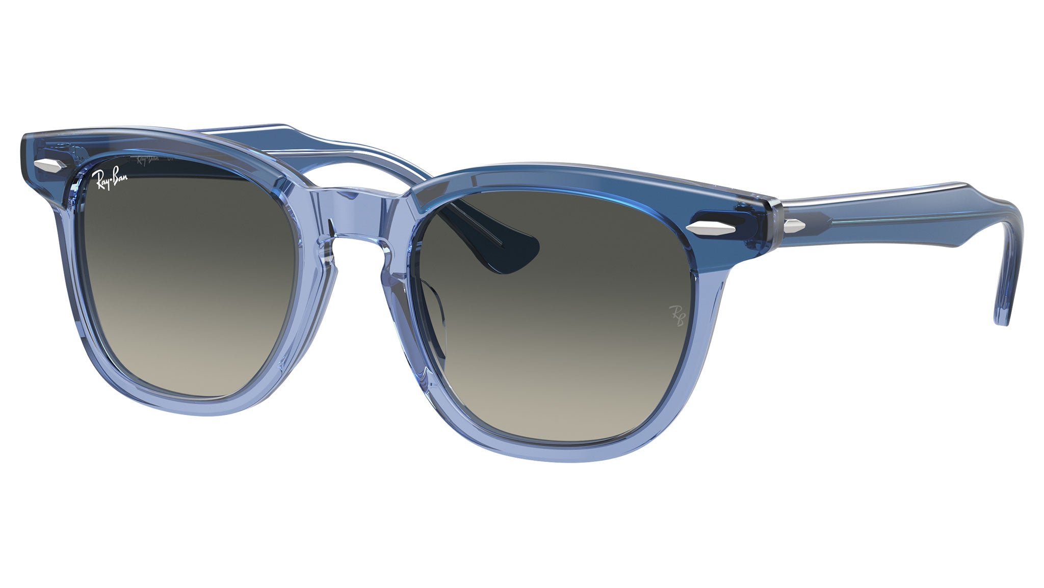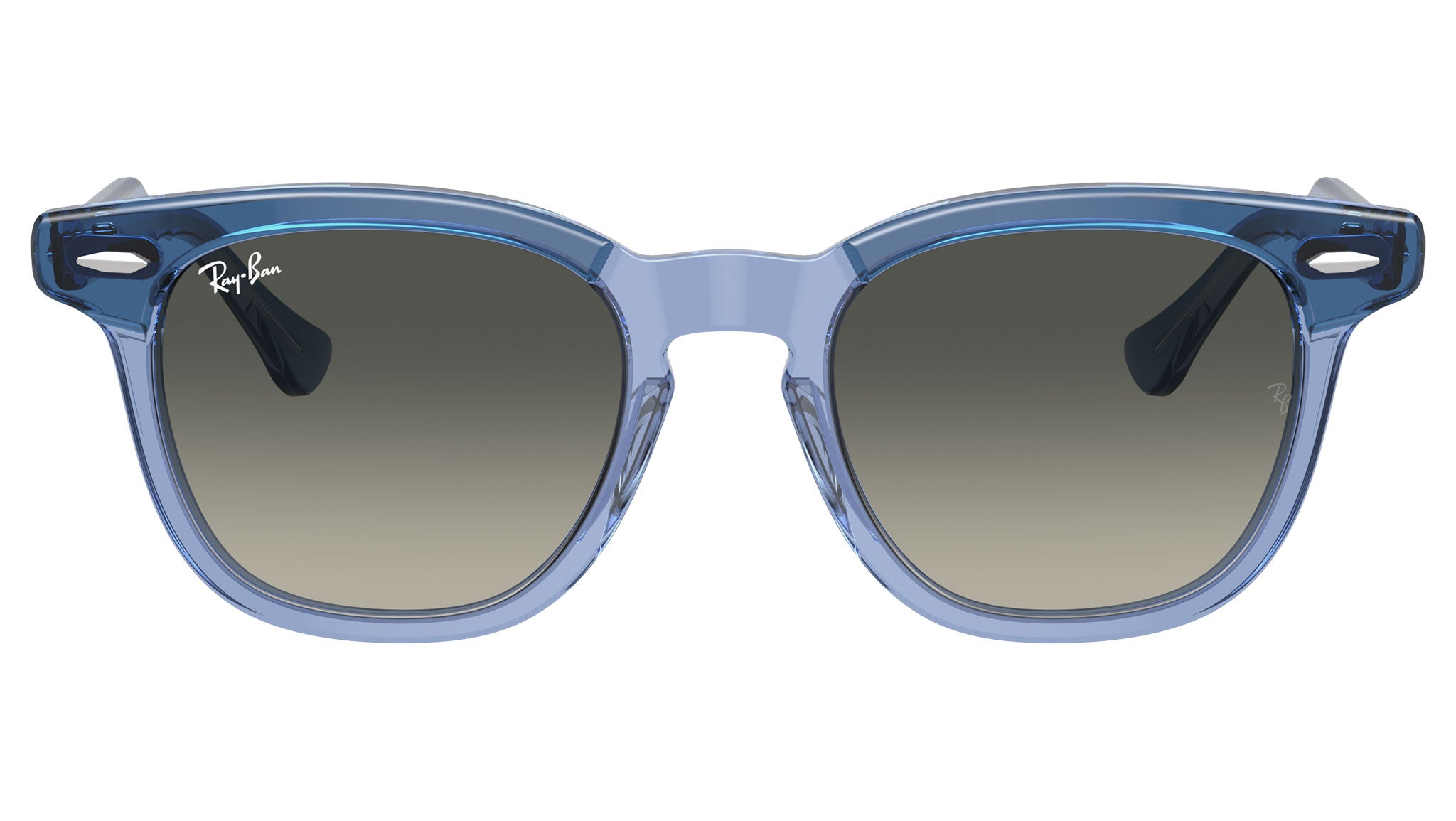 Occhiali da sole Ray-Ban Kids RJ9098S in acetato codice colore 715911 top viola su viola trasparente. Forma quadrata unisex full rim con lenti grigio / blu. Con custodia originale e garanzia. Rivenditore autorizzato Ray-Ban.
