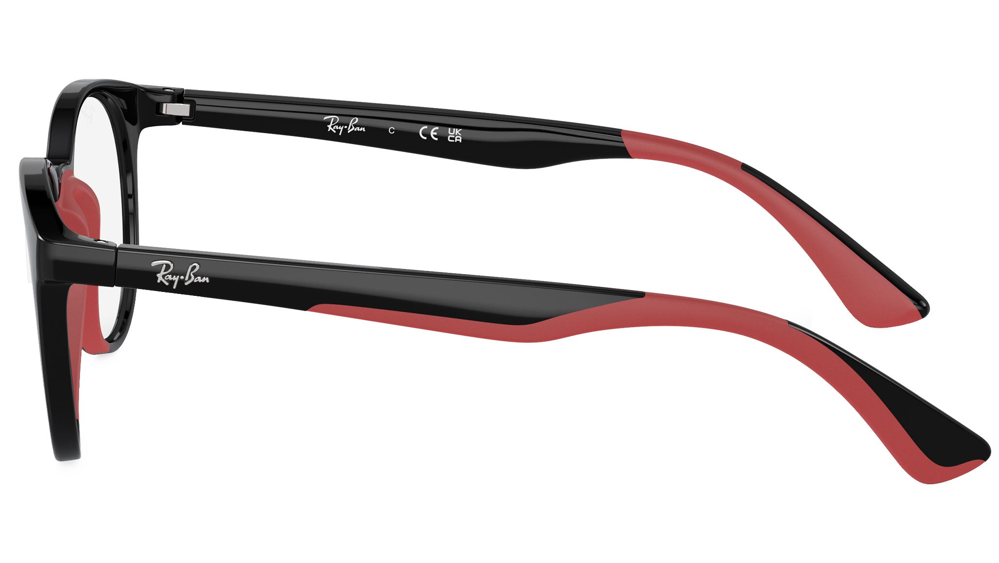 Occhiali da vista Ray-Ban Kids RY1628 color nero su rosso in iniettato codice colore 3928. Forma unisex panto full rim con lenti demo. Con custodia originale e garanzia. Rivenditore autorizzato Ray-Ban.