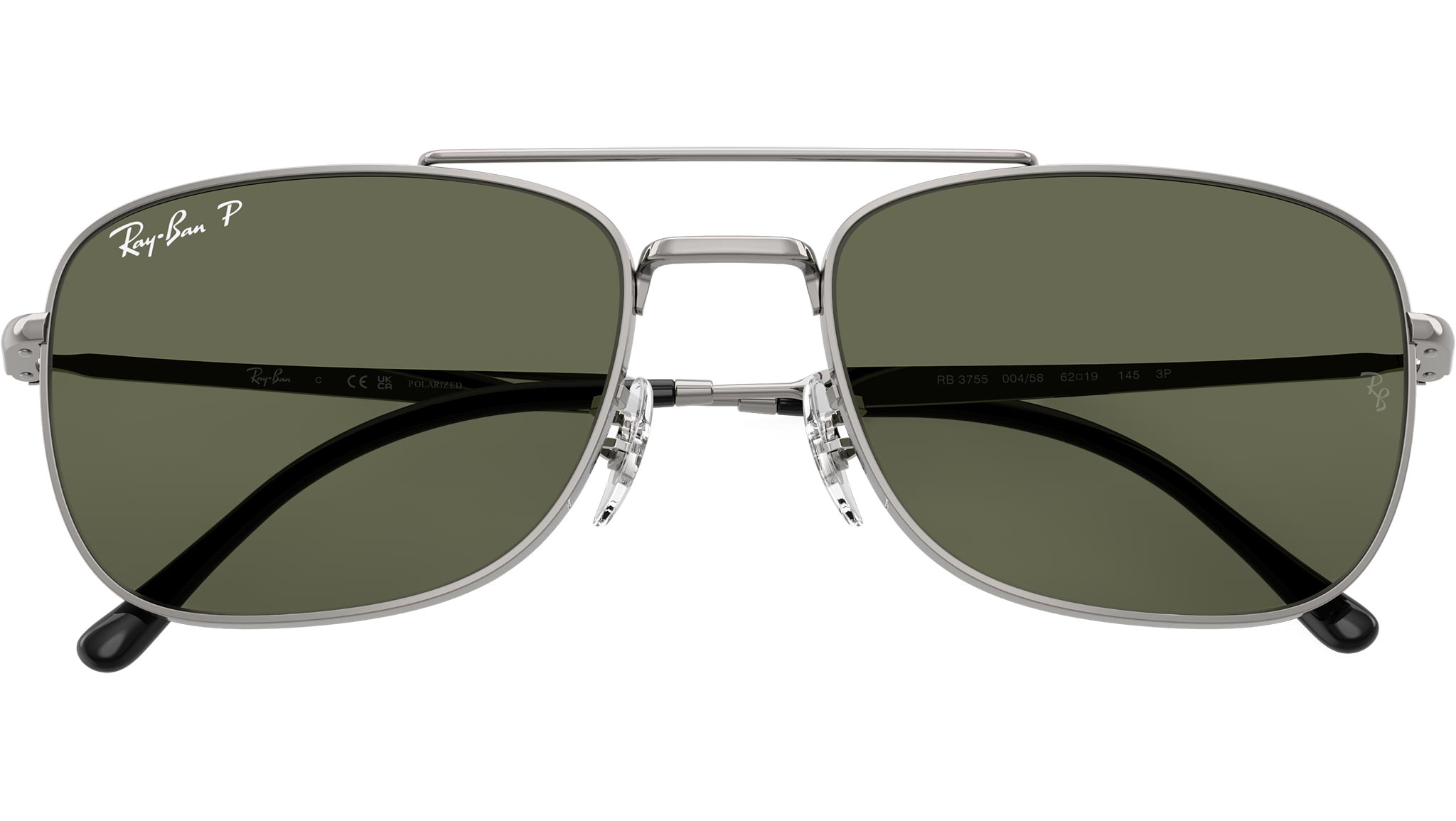 Occhiali da sole Ray-Ban RB3755 RB3755 004/58 unisex con montatura rettangolare in metallo canna di fucile e lenti in cristallo color polar verde. Naselli regolabili. Linea: Core. Codice modello: 0RB3755. Codice colore: 004/58. Rivenditore autorizzato Ray-Ban online. Gli occhiali vengono consegnati con custodia e accessori originali e sono coperti dalla garanzia ufficiale di 12 mesi del produttore.
