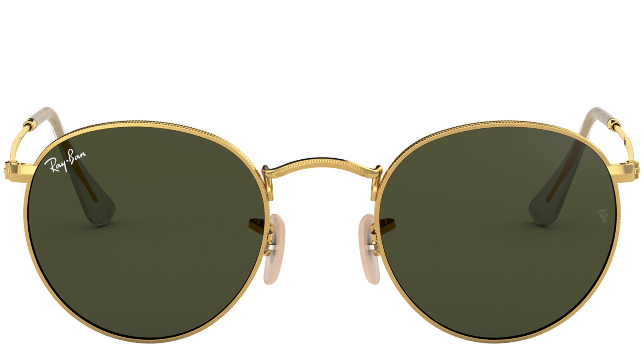 The Ray-Ban Round Metal sunglasses are totally retro. This look has been worn by legendary musicians and inspired by the 1960s counter-culture when this style first originated.The Ray-Ban unisex metal, iconic sunglasses are known for their defined round crystal lenses and distinct shape. A curved brow bar, adjustable nose pads, and thin metal temples with plastic end tips rest comfortably behind the ears.