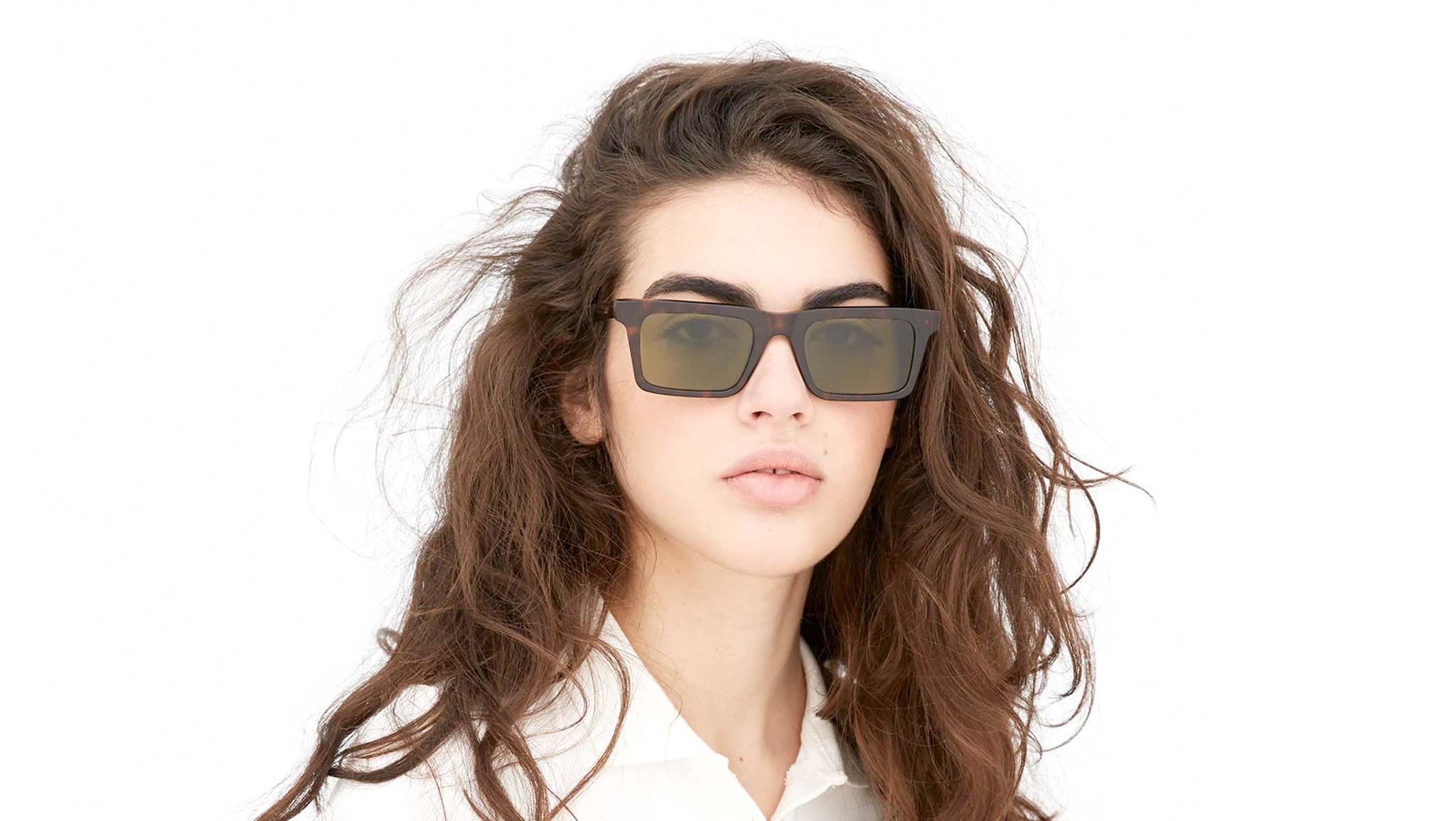 Designed for Spring/Summer 2021, 1968 is a fresh silhouette with a strict angular profile and wide lenses. Echoing vintage shapes, the model features sharp modern details, such as pointed temple tips and a thick nose-bridge. This is a minimalist, everyday frame with a universal fit that comes in a dark Havana acetate and bottle green lenses.