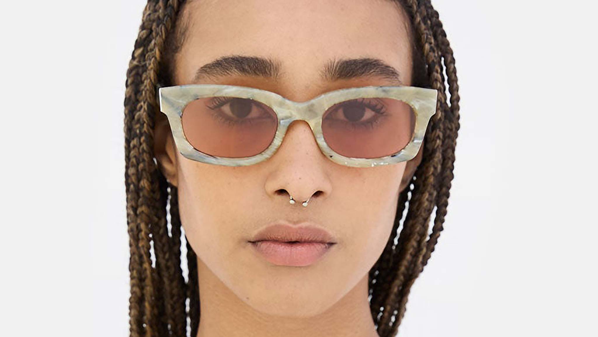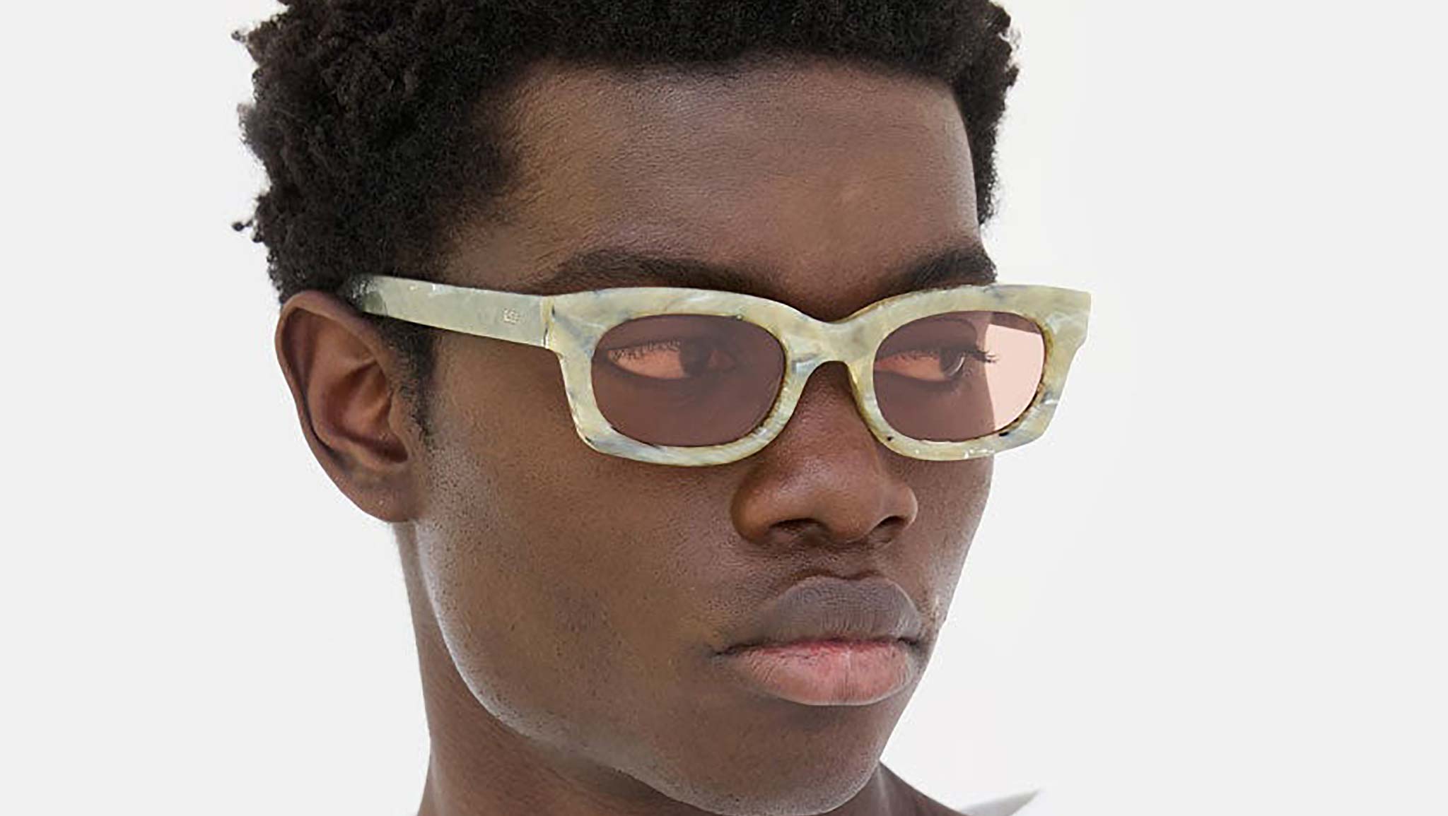 A fitted, elegant yet playful silhouette, Ambos is a modern classic. Designed as a modern twist of that unique 1950s everyday attitude. A relaxed yet determined shape, Ambos features smooth, rounded rims and oval lenses with sharp squared detailing. Its sturdy acetate has been chiseled for a polished, curvy feel, matched with ultra-sleek straight temples. This version of the Ambos comes in a unique mineral acetate with pink tinted lenses for an edgy feel. Sizes: R Lens Width: 53 mm. Frame Front: Frame Side: 145 mm. Product Code Size R: ON5