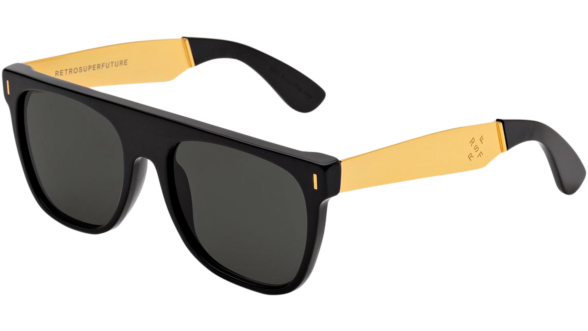 Ten years after being first released, RSF celebrates its iconic Francis series of eyewear. This version of the Flat Top has been updated with sharp detailing to match the contemporary aesthetic sensibility. Pure and sturdy metal temples – the distinctive Francis feature – elevate the model’s compact acetate construction. This design pairs shiny black acetate with rich, shiny gold metal. RSF’s X logo is inscribed in the temples, celebrating the 10 years of the Francis design. Sizes: R Lens Width: 55 mm. Frame Front: 140 mm. Frame Side: 145 mm. Product Code Size R: LAM