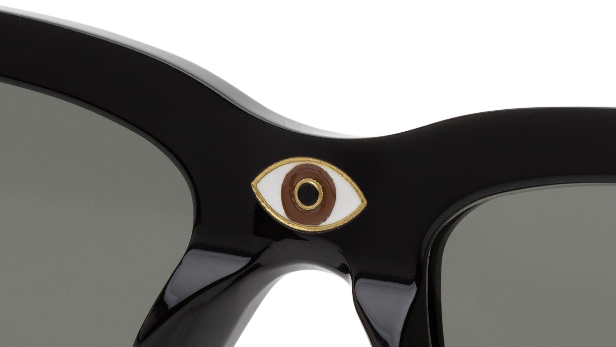 Designed in collaboration with Aspesi, this version of Milano elevates everyday eyewear with playful detailing. Known for their unique approach to design that emphasises a playful minimalism and timelessness, Aspesi is a historical Milanese brand. This model celebrates Aspesi’s approach to design with a classic 1950s-inspired shape that comes in an all-black finish with a playful eye-shaped décor on interior of the nose-bridge. Sizes: R Lens Width: 54 mm. Frame Front: 146 mm. Frame Side: 145 mm. Product Code Size R: 6UF