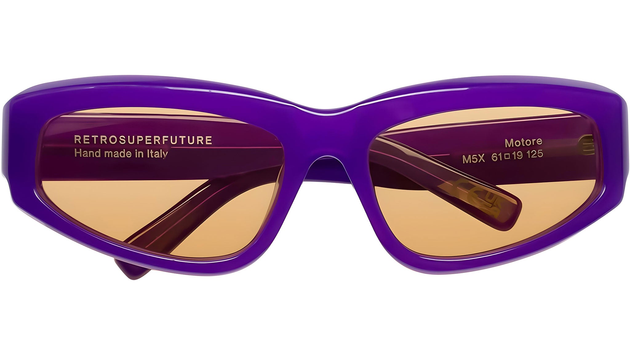 Motore came to this earth with an athletic core, but gradually matured with time and thanks to its evolution this design grew into an elegant and fashion forward piece that boasts a strong confident character. Motore’s sharp lines and low riding frame kept the eyewear’s fast character, while its meticulous acetate carving and refined details gave the piece its distinctive and sophisticated manner. This version is available in a unique purple acetate and elegant mustard lenses. Sizes: R. Lens Width: 61 mm. Frame Front: Frame Side: 125 mm. Product Code Size R: M5X.