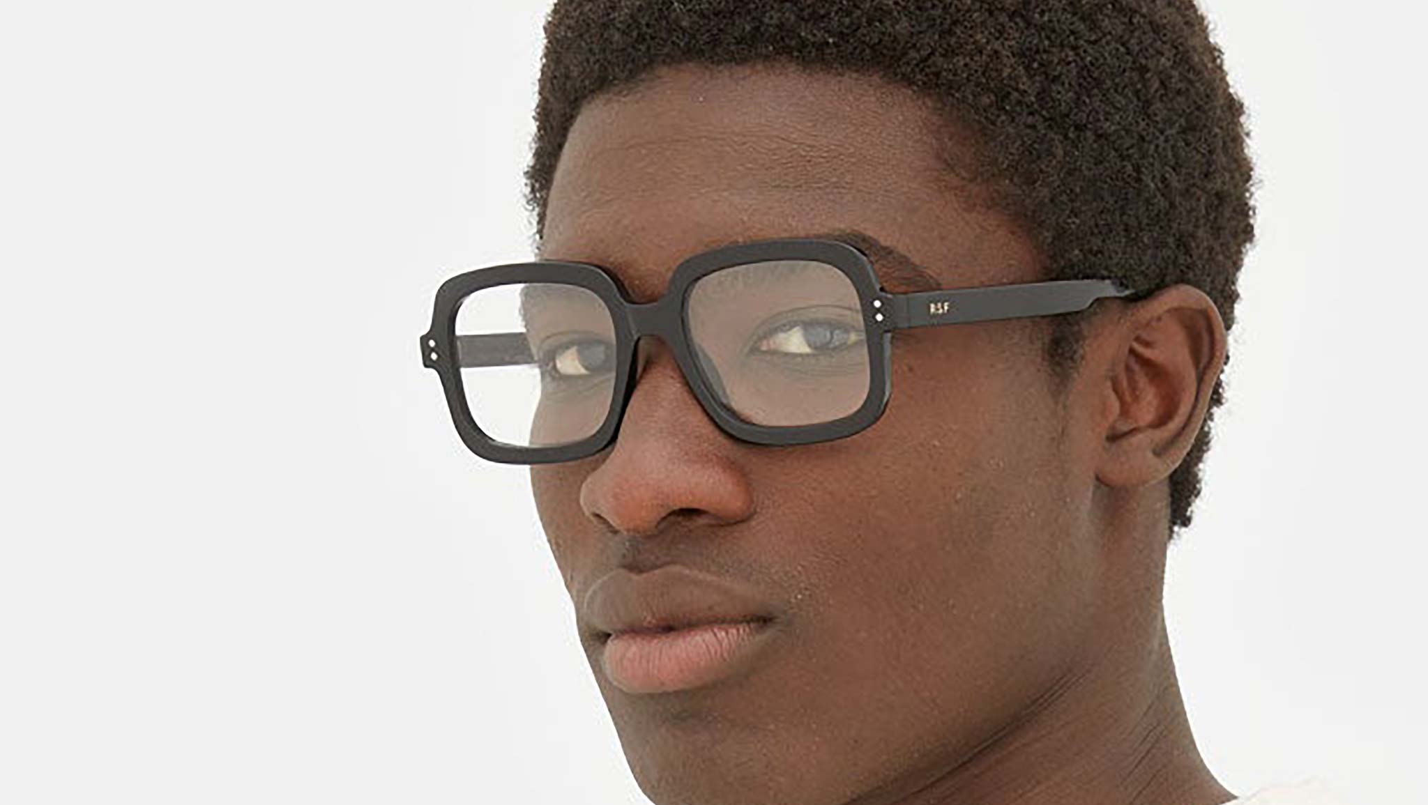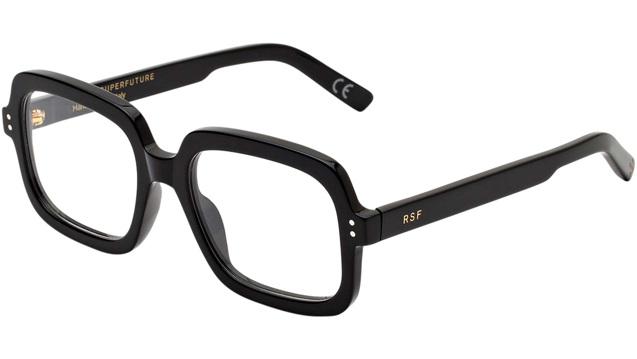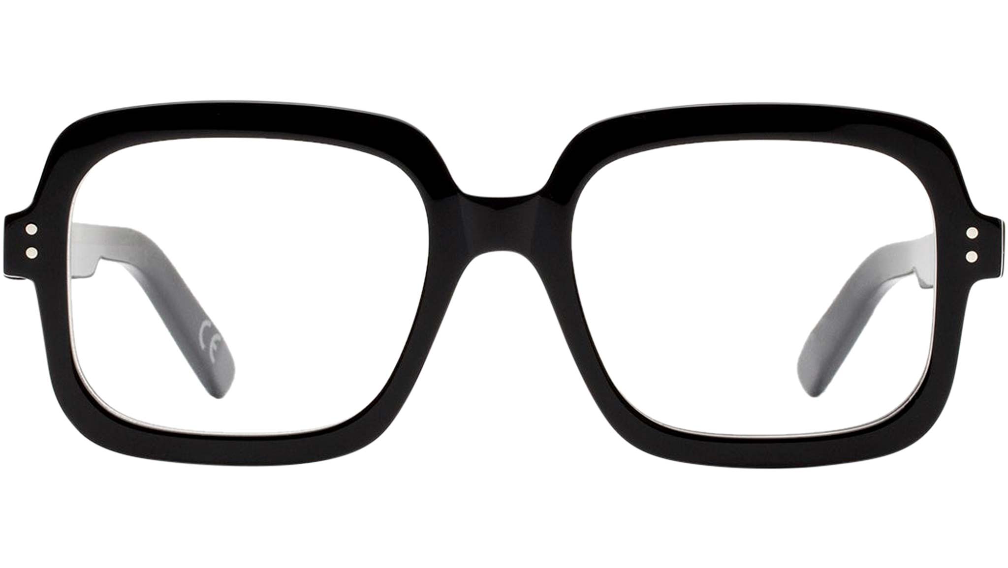 Celebrating edgy and playful oversized 70s designs for everyday optical frames, Numero 103 captures the glamour and style of the disco decade, adapting it for a modern vision. This squared, oversized model features thick acetate rims that have been further sculpted for lightness and functionality in daily use. Numero 103 is designed for those looking to stand out in the busy landscape. This version comes in a shiny black acetate. Sizes: R Lens Width: 53 mm. Frame Front: Frame Side: 145 mm. Product Code Size R: 9Z1