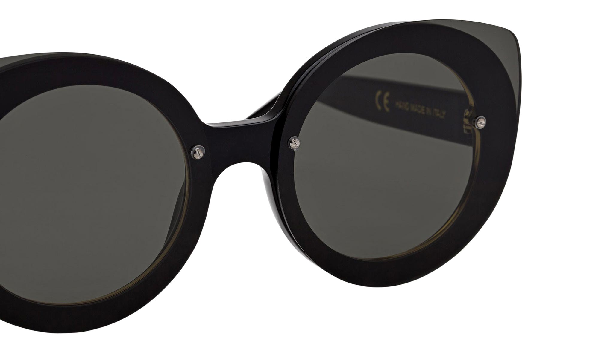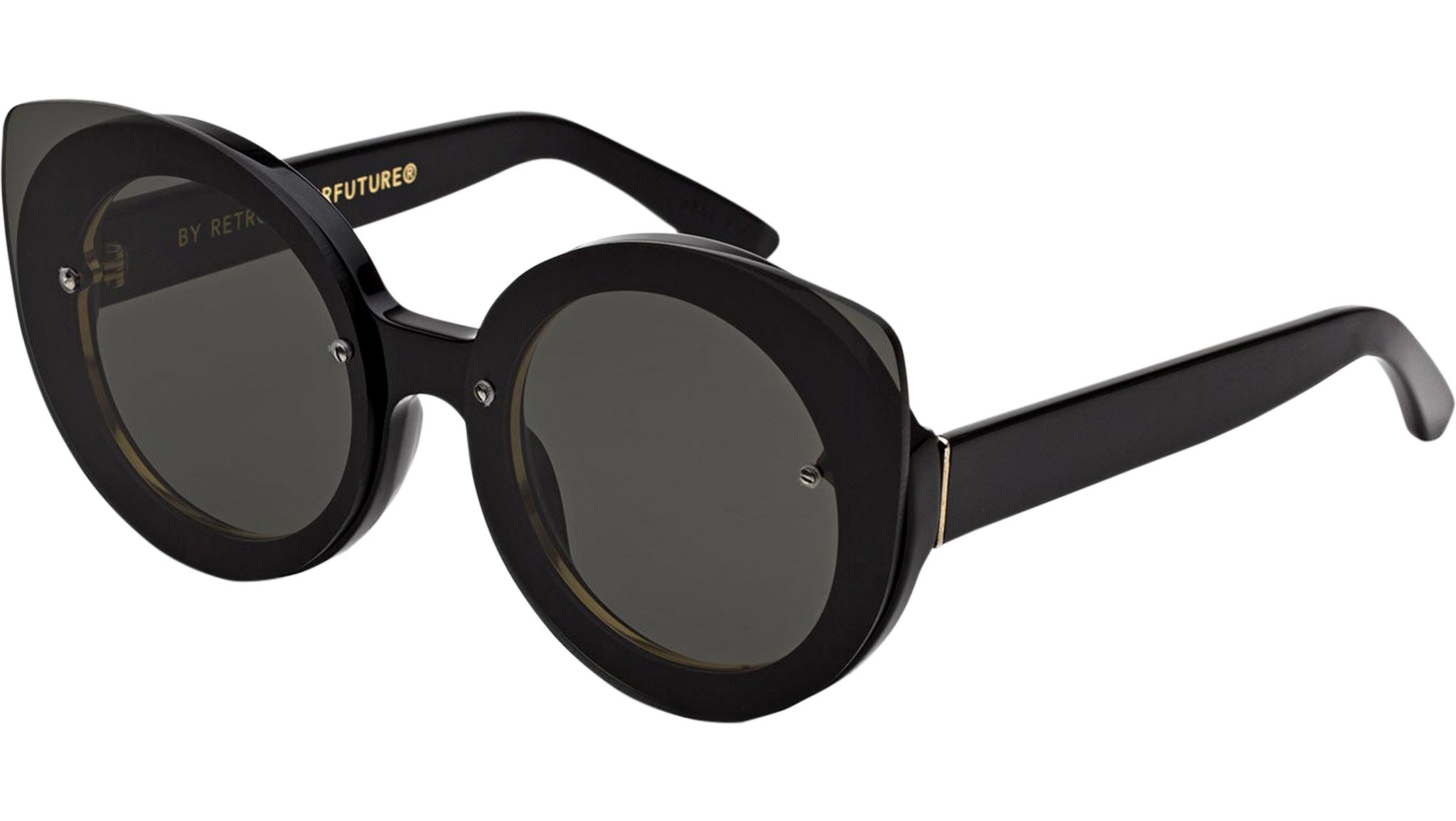 Retrosuperfuture sunglasses model Rita Black. Sizes: R Lens Width: 51 mm. Frame Front: 143 mm. Frame Side: 140 mm. Product Code Size R: SXD