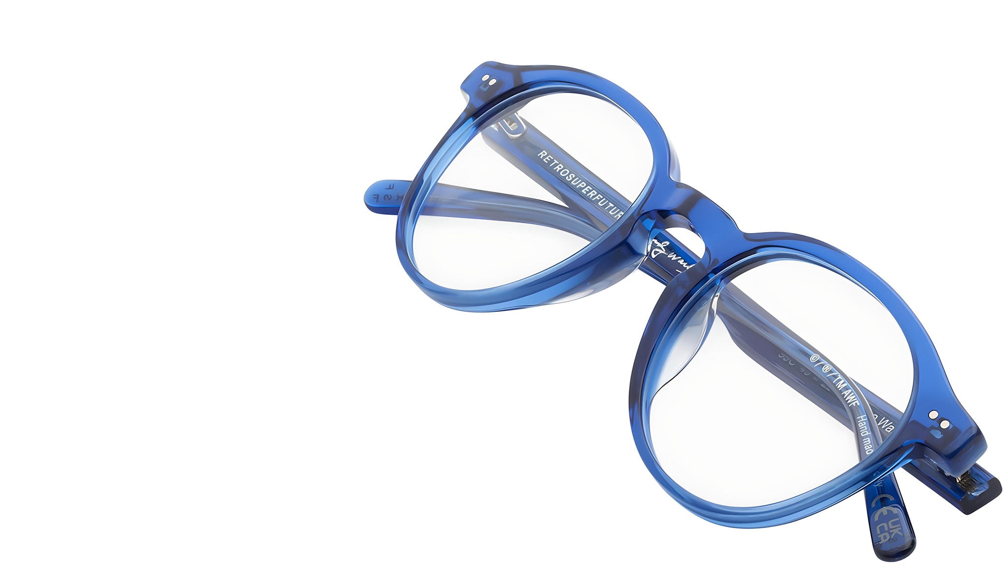 The Warhol is a classic rounded silhouette inspired by Andy Warhol’s iconic frame. The model’s key features include chunky squared temple tips and keyhole nose-bridge. A sleek everyday silhouette, The Warhol comes with elegant metal detailing and an elegant blue crystal acetate. Prescription lenses not included. Sizes: R. Lens Width: 49 mm. Frame Front: Frame Side: 145 mm. Product Code Size R: 99C.