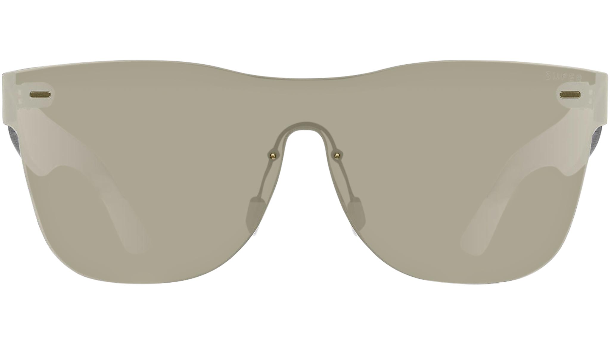 Tuttolente Classic Ivory is a well-known silhouette that stands out for its simple and unobtrusive form reproduced in a unique, all-lens outline. To match the geometric appeal of the shape, this version sports a nuanced silver ivory hue with a mirrored coating.
