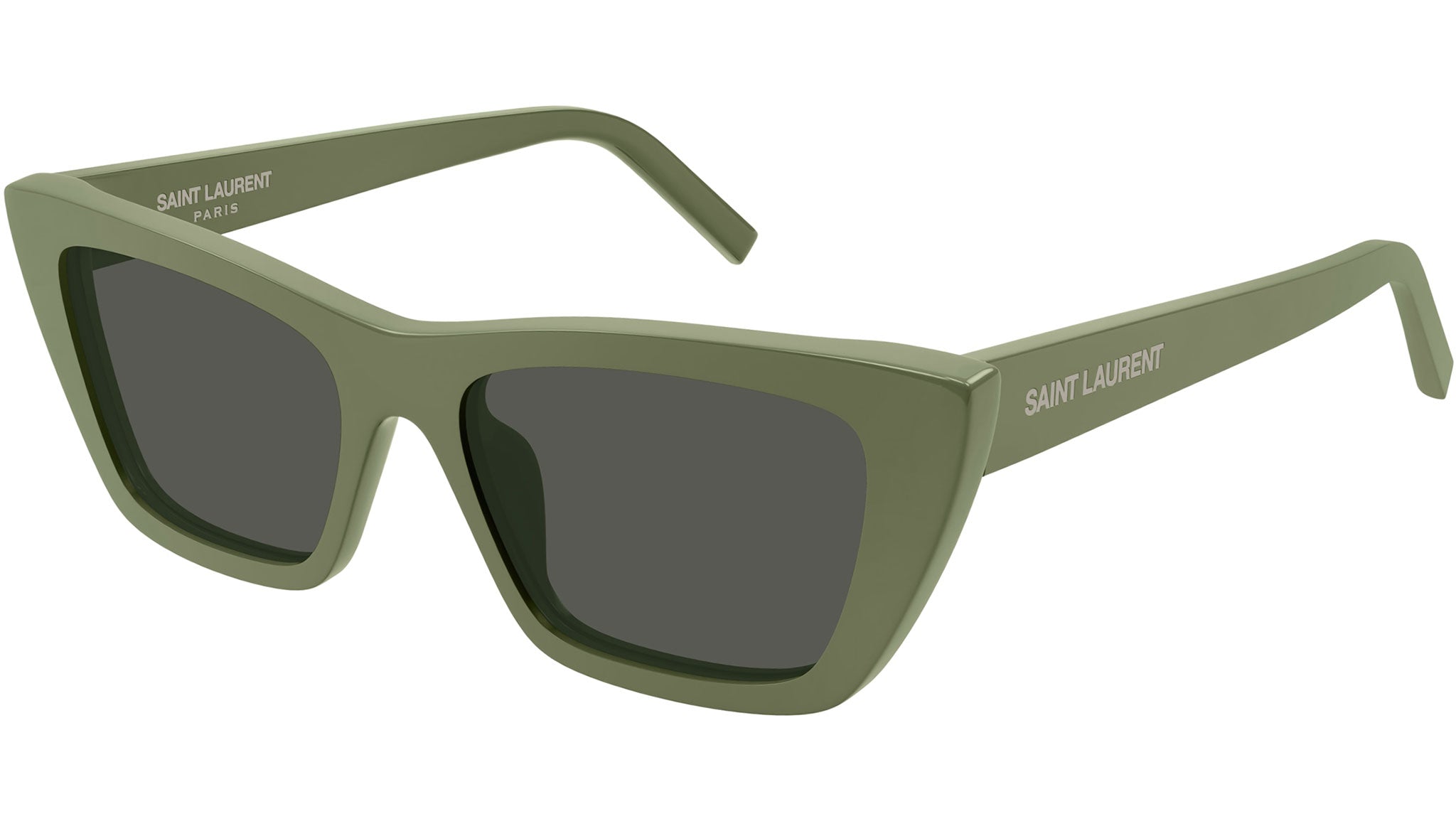 Occhiali da sole Saint Laurent SL 276 MICA 057 donna con montatura cat eye in acetato verde chiaro tinta unita e lenti grigio tinta unita. Linea: New Wave. Codice modello: SL 276 MICA. Codice colore: 057. Made in Italy. Rivenditore autorizzato Saint Laurent online. Gli occhiali vengono consegnati con custodia e accessori originali e sono coperti dalla garanzia ufficiale di 12 mesi del produttore.
