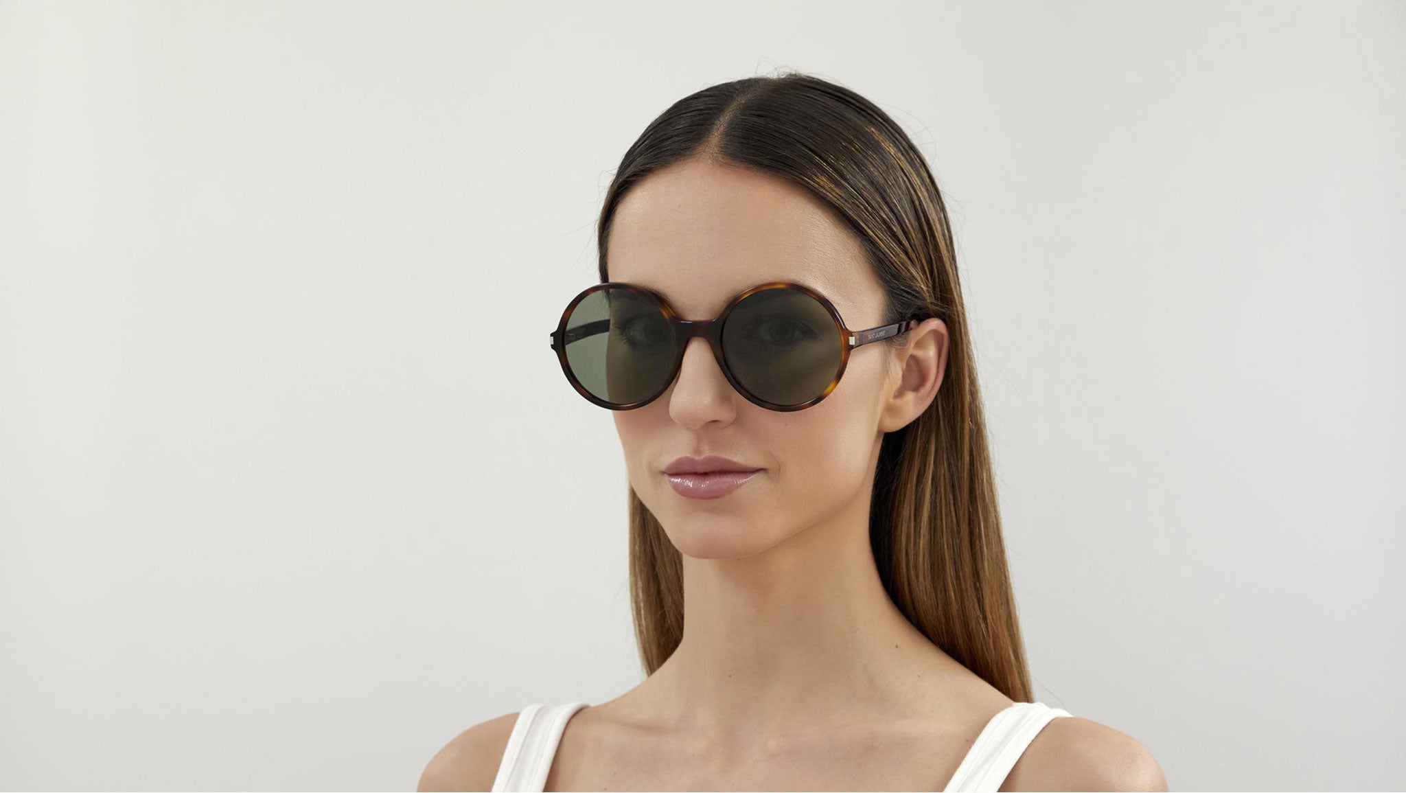 Occhiali da sole Saint Laurent linea New Wave modello SL 450 003, variante colore avana medio lucido con lenti color verde tinta unita. Saint Laurent Eyewear rappresenta in pieno le attitudini uniche del brand: stile senza tempo coniugato a un moderno concetto di lusso. La collezione YSL di occhiali da sole offre una raffinata selezione di prodotti unici, contraddistinti da una qualità inarrivabile.