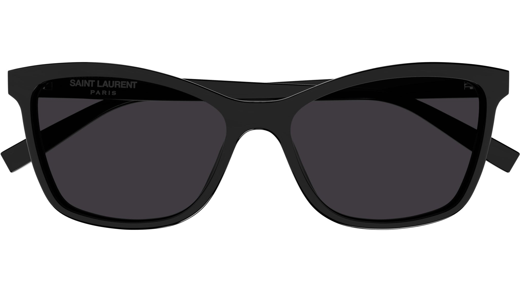 Occhiali da sole Saint Laurent modello SL 502 linea Classic codice colore 001 nero lucido in acetato forma cat eye con lenti color nero tinta unita.