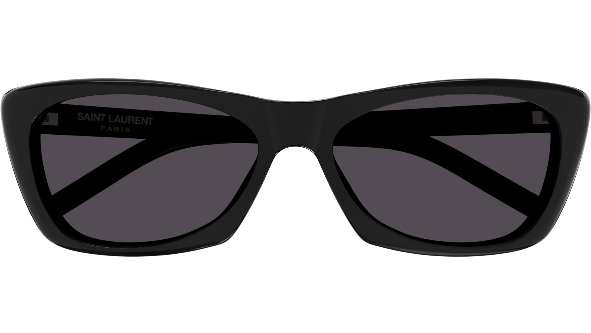 Occhiali da sole Saint Laurent modello SL 613 linea New Wave codice colore 001 nero lucido tinta unita in acetato riciclato forma cat eye con lenti color nero tinta unita.
