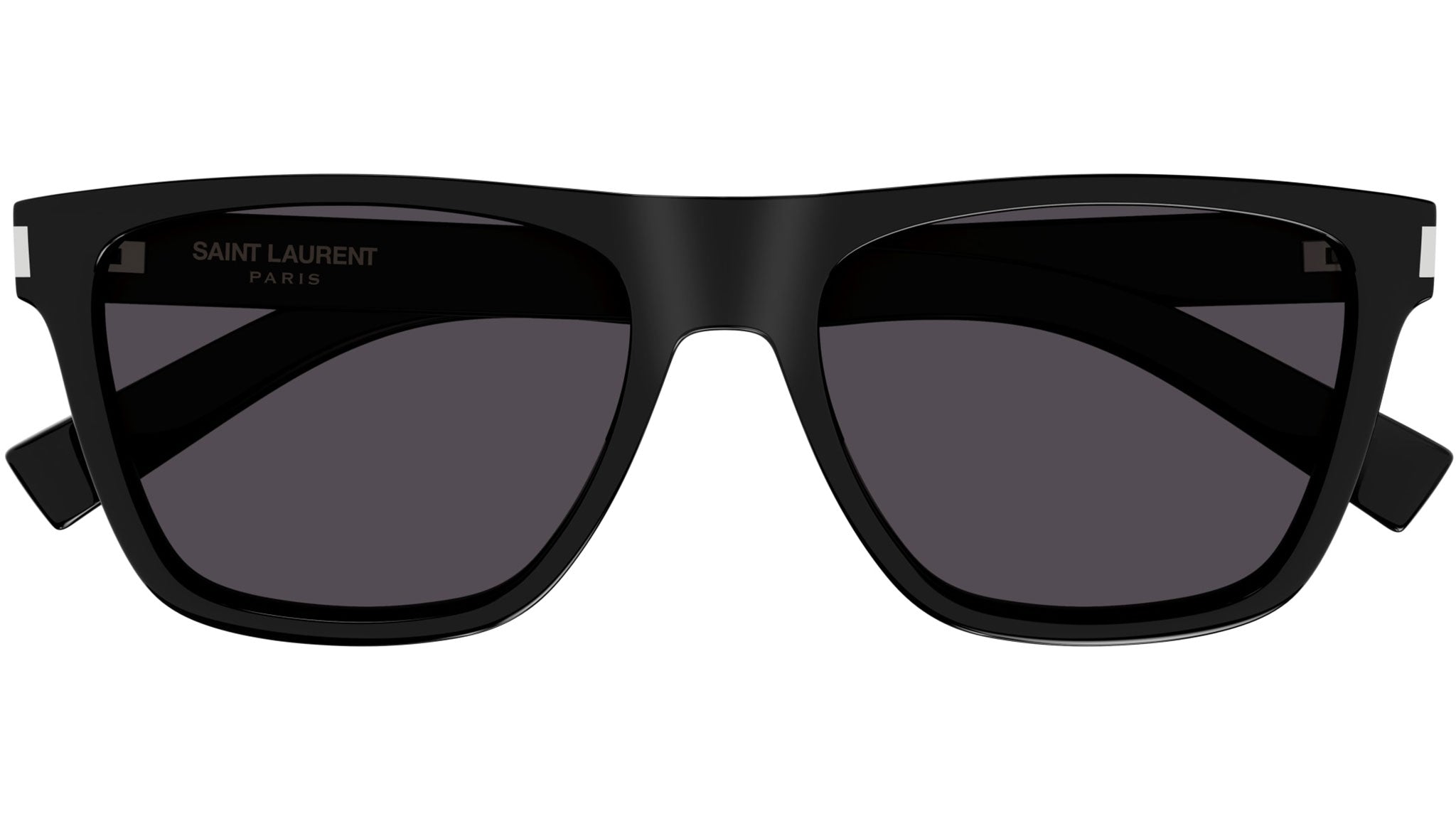 Occhiali da sole Saint Laurent modello SL 619 linea Classic codice colore 001 nero lucido tinta unita in acetato riciclato forma panthos con lenti color nero tinta unita.