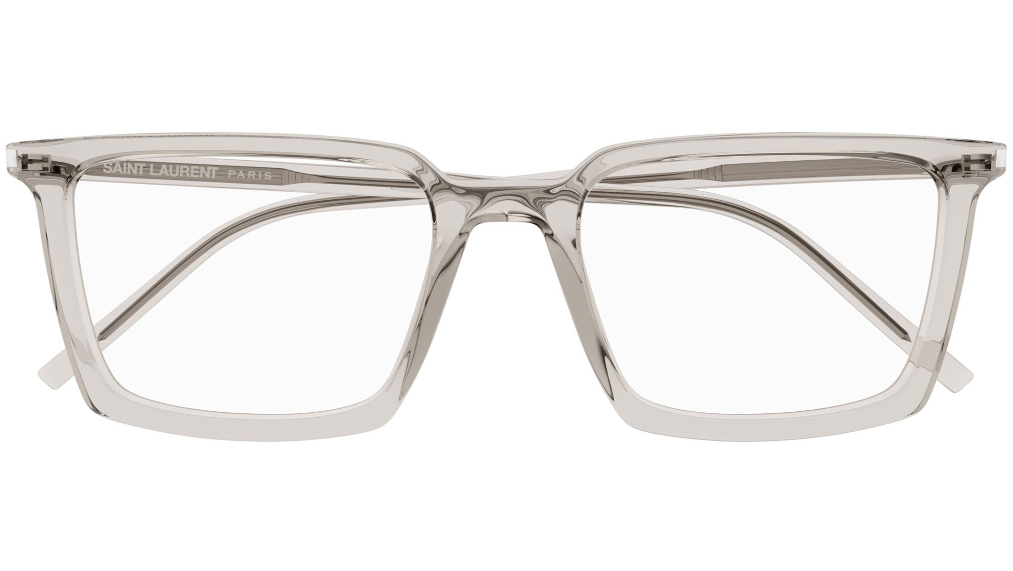Occhiali da vista Saint Laurent modello SL 624 linea New Wave codice colore 003 crema trasparente lucido in acetato riciclato forma rectangle con aste color beige.