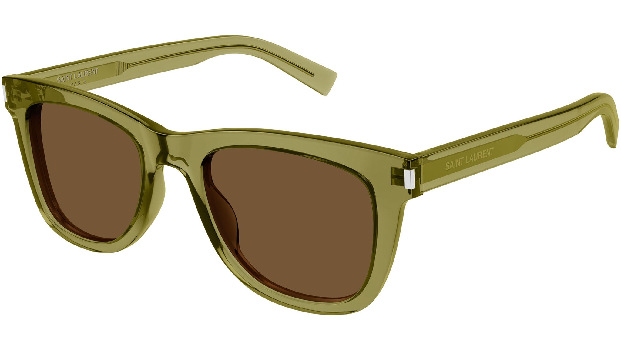 Occhiali da sole Saint Laurent SL 712 005 unisex con montatura cat eye in acetato riciclato verde acido trasparente e lenti marrone tinta unita. Linea: Corner Angle. Codice modello: SL 712. Codice colore: 005. Made in Japan. Rivenditore autorizzato Saint Laurent online. Gli occhiali vengono consegnati con custodia e accessori originali e sono coperti dalla garanzia ufficiale di 12 mesi del produttore.