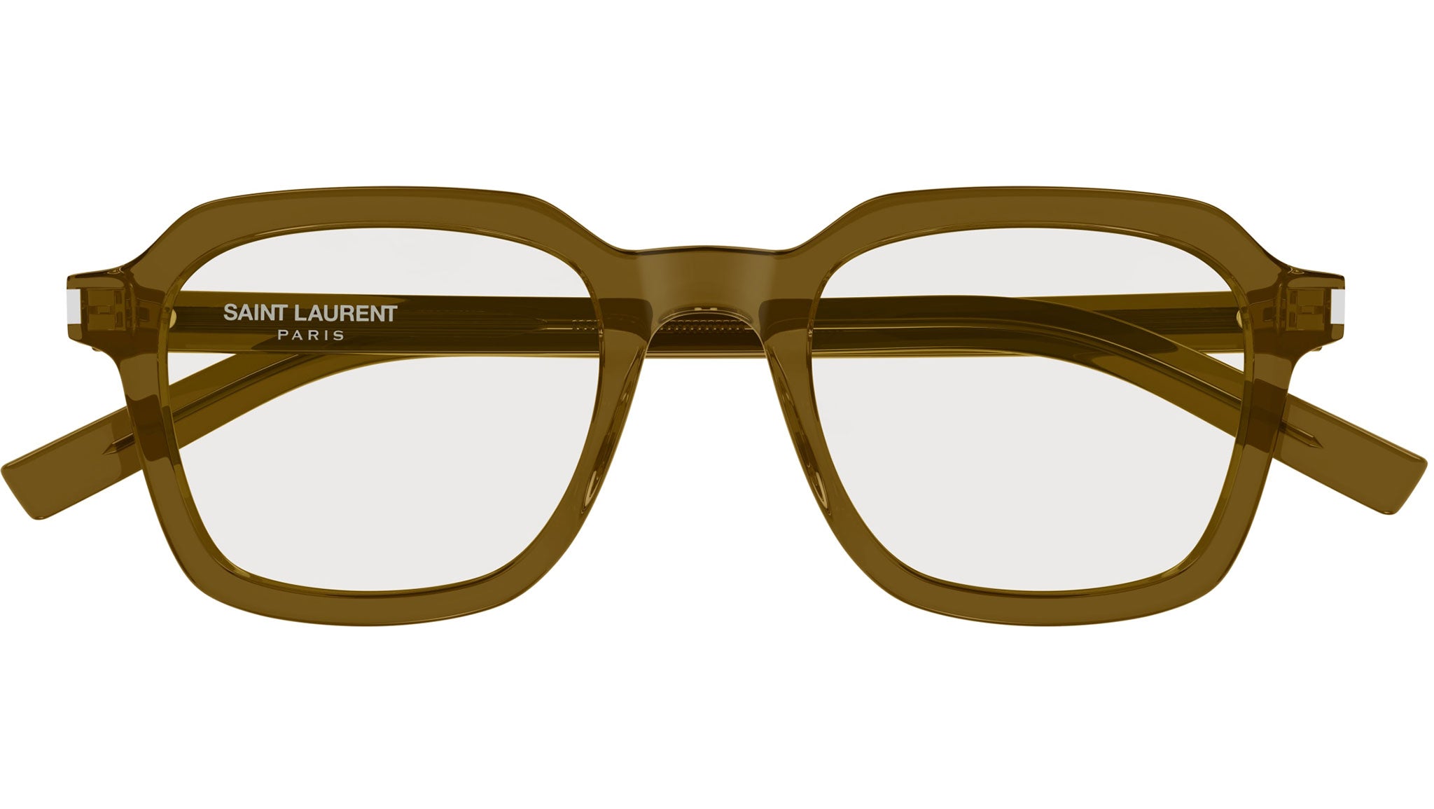 Occhiali da vista Saint Laurent SL 715 SLIM OPT 005 unisex con montatura rettangolare in acetato riciclato marrone cognac trasparente e lenti demo. Linea: Corner Angle. Codice modello: SL 715 SLIM OPT. Codice colore: 005. Made in Italy. Rivenditore autorizzato Saint Laurent online. Gli occhiali vengono consegnati con custodia e accessori originali e sono coperti dalla garanzia ufficiale di 12 mesi del produttore.