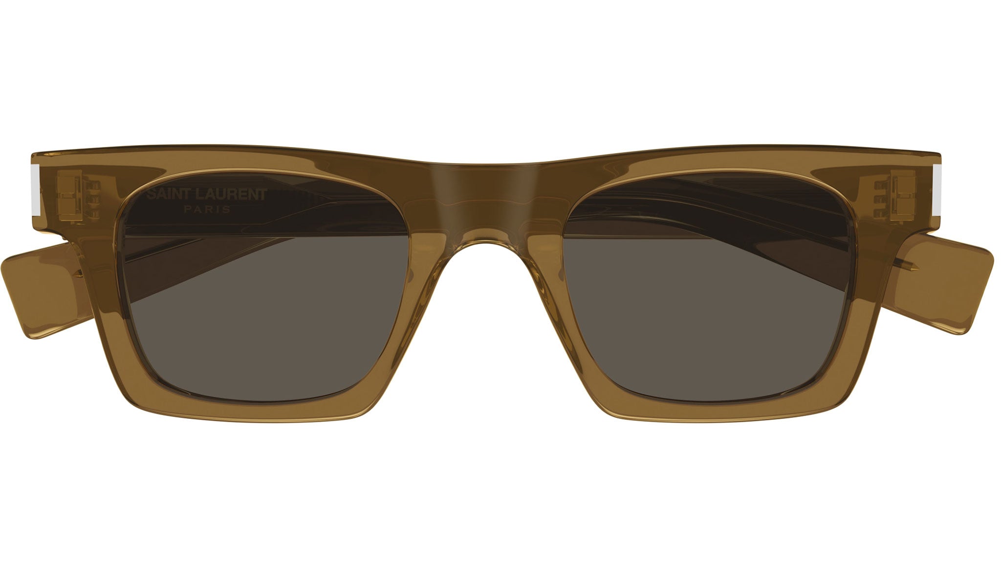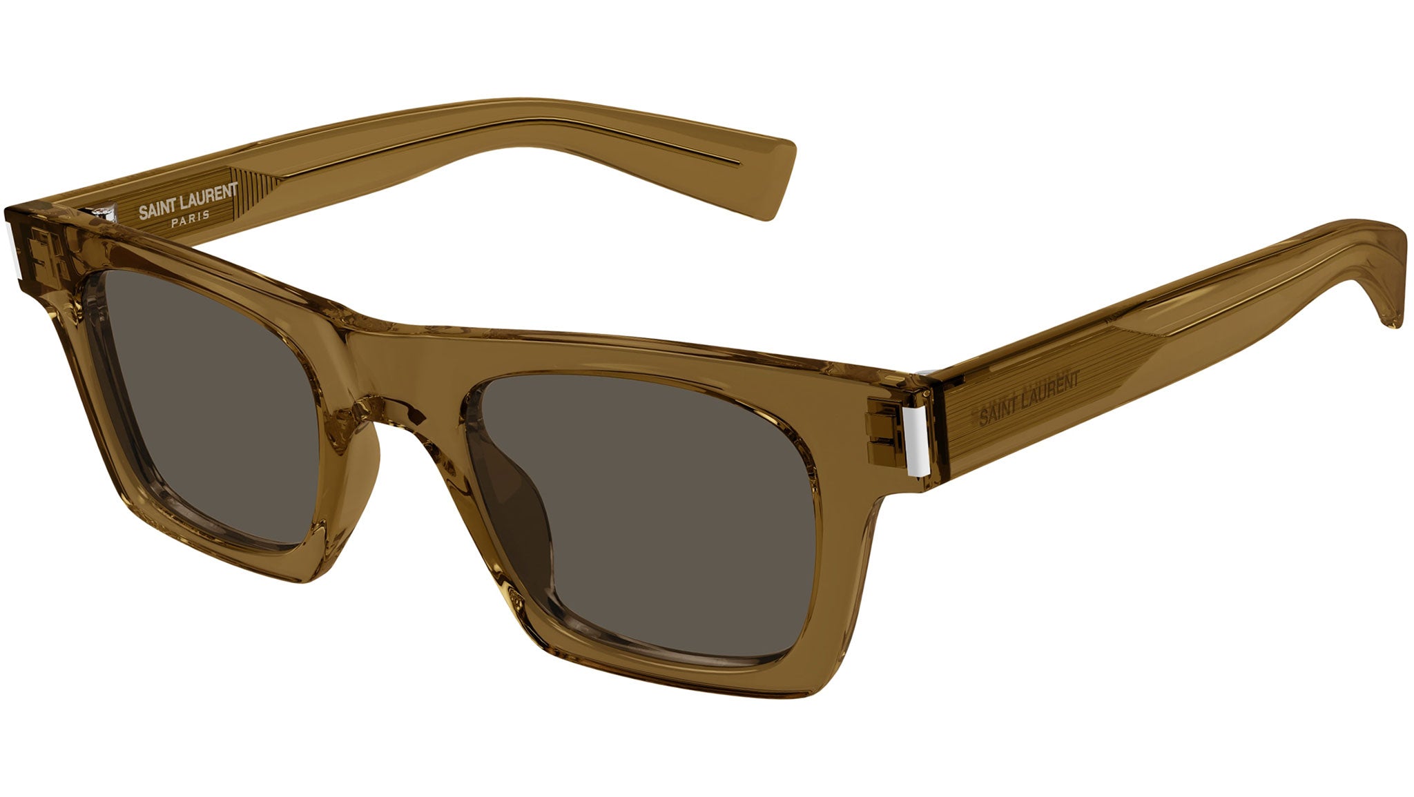 Occhiali da sole Saint Laurent SL 719 005 unisex con montatura rettangolare in acetato riciclato marrone cognac trasparente e lenti marrone chiaro tinta unita. Linea: Corner Angle. Codice modello: SL 719. Codice colore: 005. Made in Italy. Rivenditore autorizzato Saint Laurent online. Gli occhiali vengono consegnati con custodia e accessori originali e sono coperti dalla garanzia ufficiale di 12 mesi del produttore.