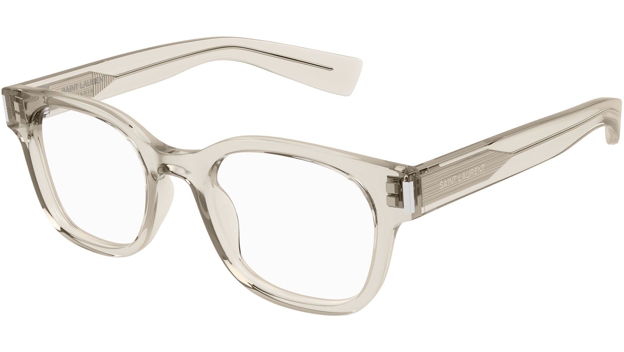 Occhiali da vista Saint Laurent SL 722 donna con montatura rettangolare in acetato riciclato crema trasparente lucido e lenti demo. Linea: Corner Angle. Codice modello: SL 722. Codice colore 51 mm: 008. 54 mm: 001. Made in Italy. Rivenditore autorizzato Saint Laurent online. Gli occhiali vengono consegnati con custodia e accessori originali e sono coperti dalla garanzia ufficiale di 12 mesi del produttore.