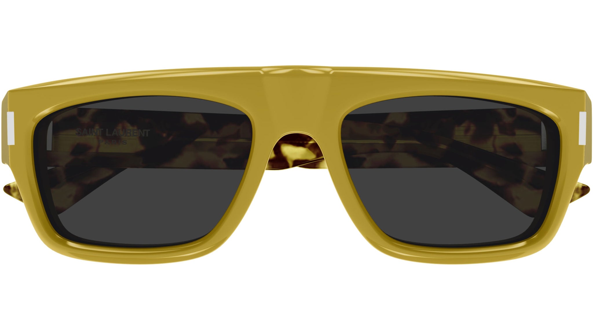 Occhiali da sole Saint Laurent SL 762 004 uomo con montatura rettangolare in acetato riciclato ocra e lenti grigio tinta unita. Linea: Corner Angle. Codice modello: SL 762. Codice colore: 004. Made in Italy. Rivenditore autorizzato Saint Laurent online. Gli occhiali vengono consegnati con custodia e accessori originali e sono coperti dalla garanzia ufficiale di 12 mesi del produttore.
