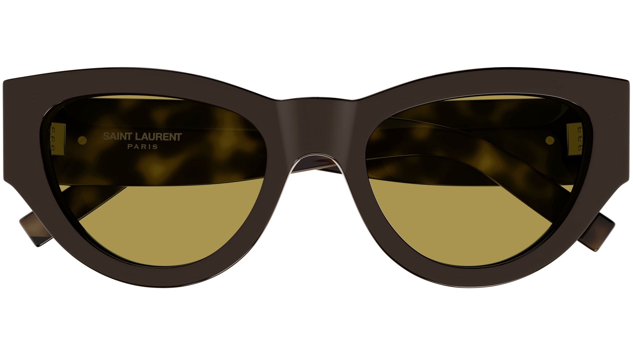 Occhiali da sole Saint Laurent SL M94 010 donna con montatura cat eye in acetato marrone scuro lucido tinta unita e lenti beige nicotina tinta unita. Linea: Monogram. Codice modello: SL M94. Codice colore: 010. Made in Italy. Rivenditore autorizzato Saint Laurent online. Gli occhiali vengono consegnati con custodia e accessori originali e sono coperti dalla garanzia ufficiale di 12 mesi del produttore.