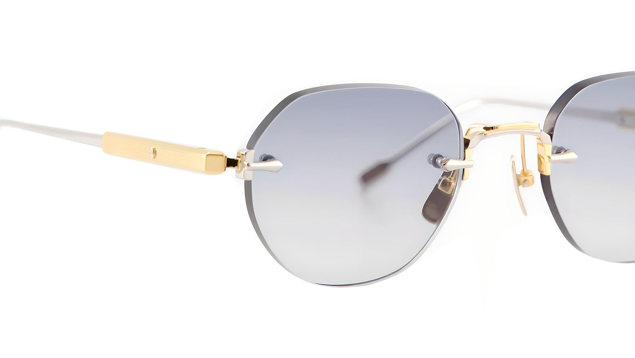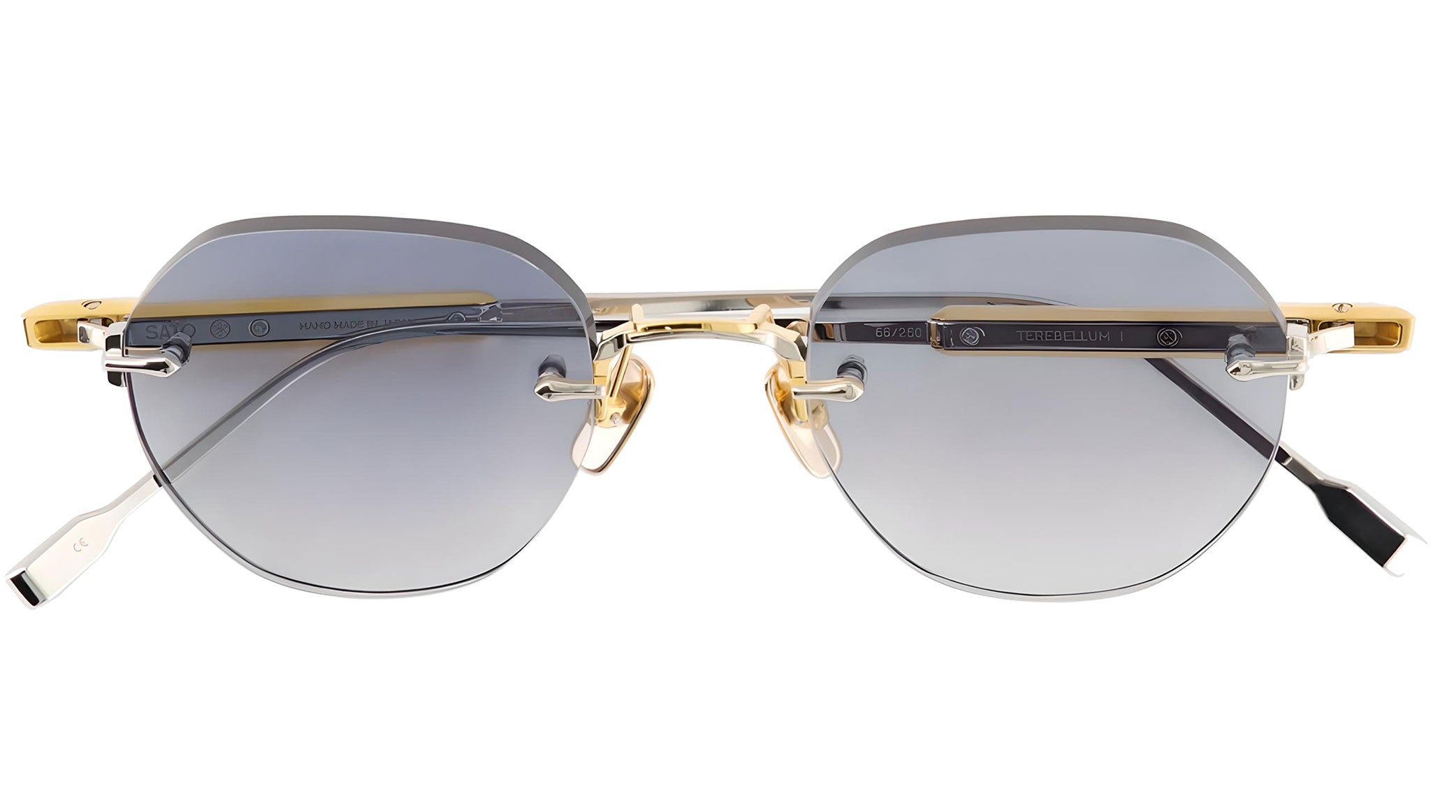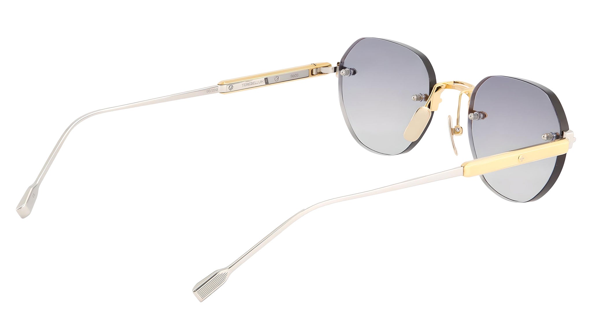 Gli occhiali da sole Sato Terebellum I S603 offrono una montatura in titanio con rivestimento in oro giallo e platino e lenti sfumate blu-grigie. Entra in un mondo in cui gli occhiali diventano una dichiarazione intrigante. Con linee esili, realizzate in puro titanio e una costruzione audace senza cornice, la linea Terebellum rende omaggio all'energia vitale della Harlem degli anni '90. Progettati per chi ha un fascino enigmatico e un'inclinazione al rischio, incarnano il fascino dell'indomito.